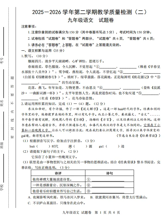 一、语文积累与运用(35分)