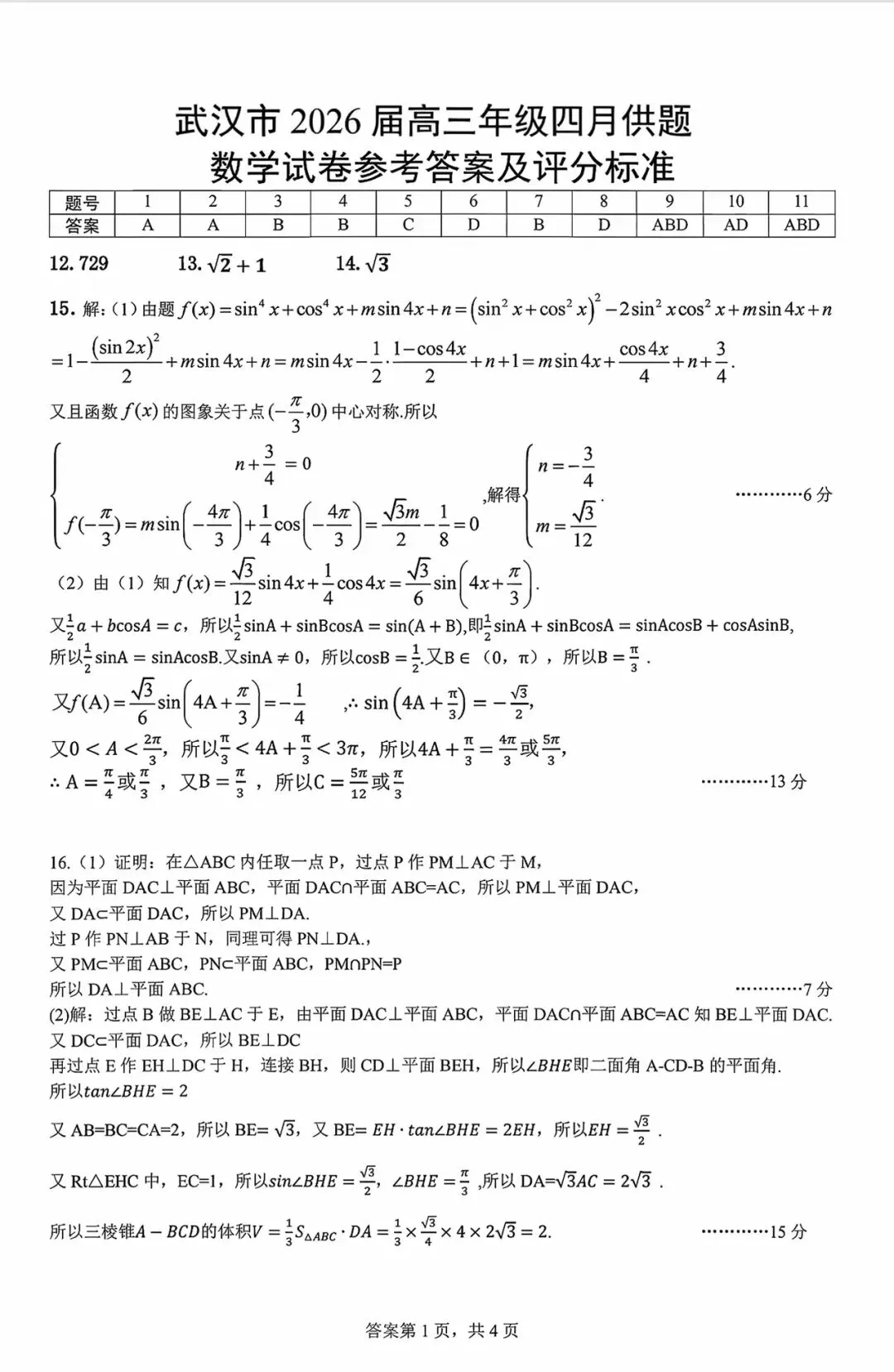 2026年四月人教版数学九年级下册模拟试卷(含答案)