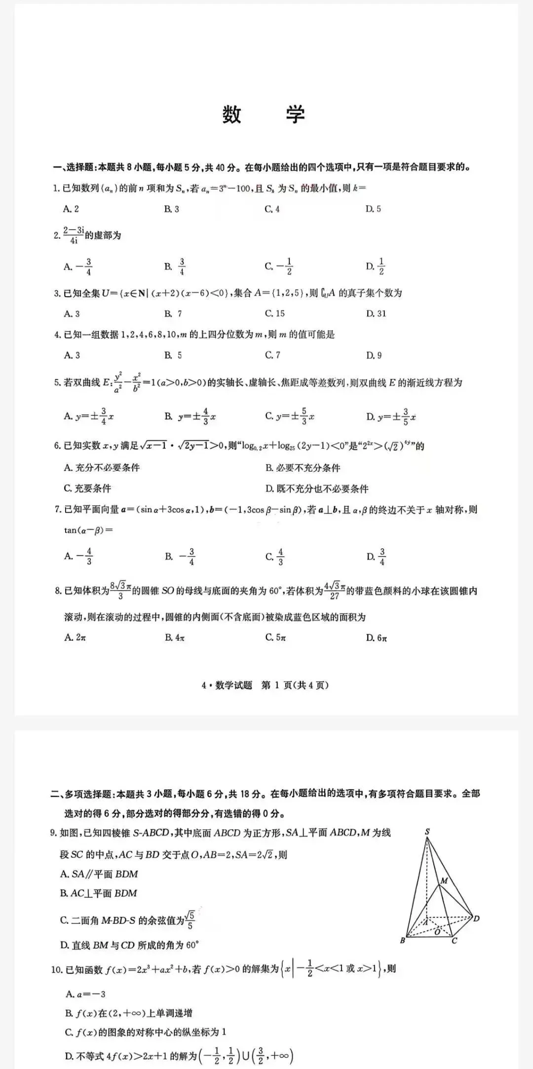 【2026年师大附中四模数学试卷】