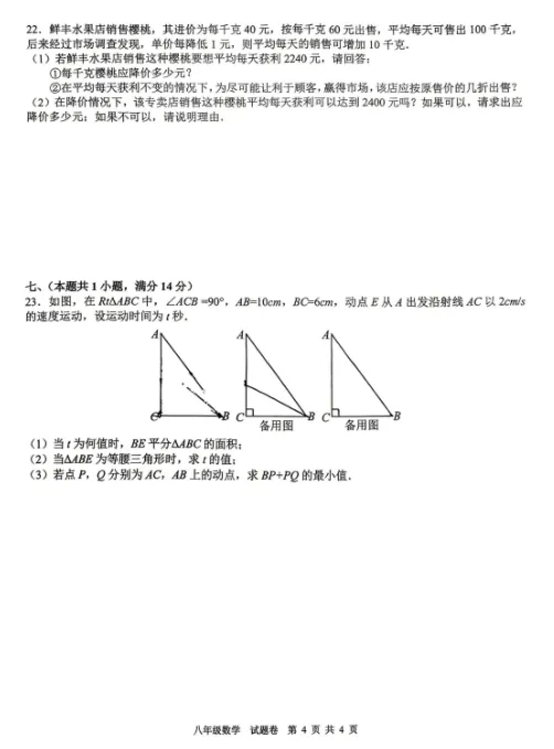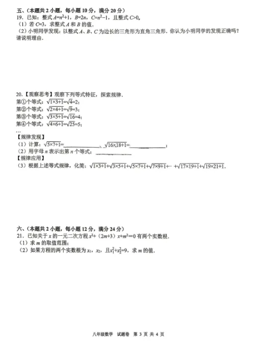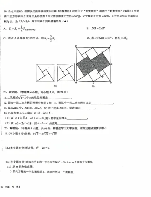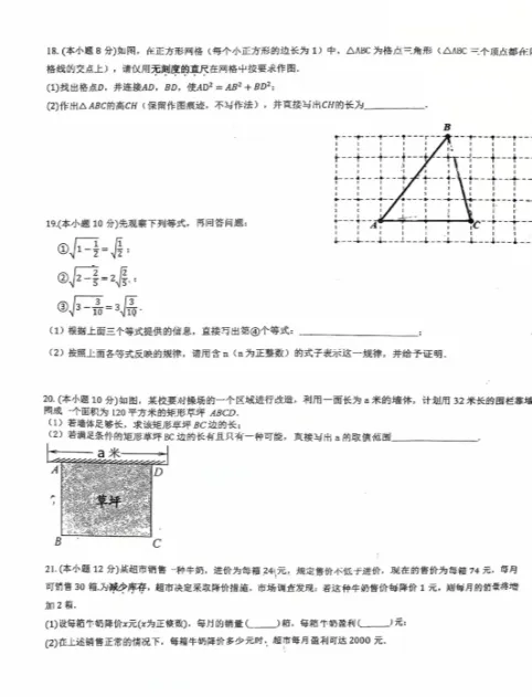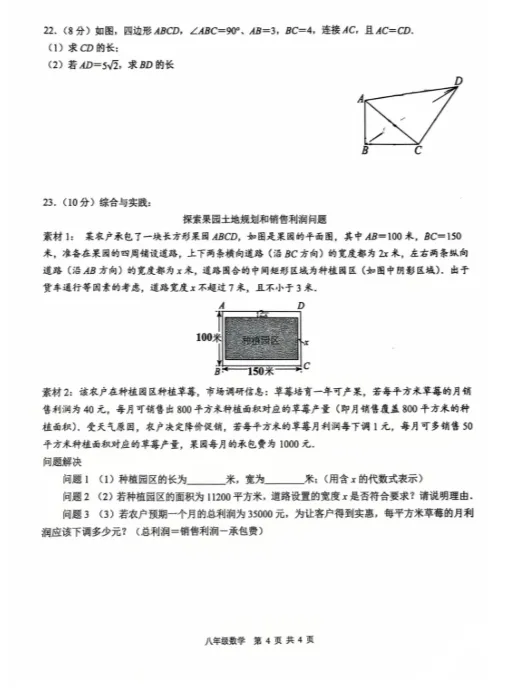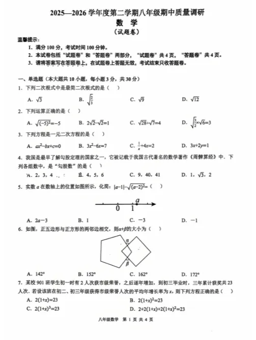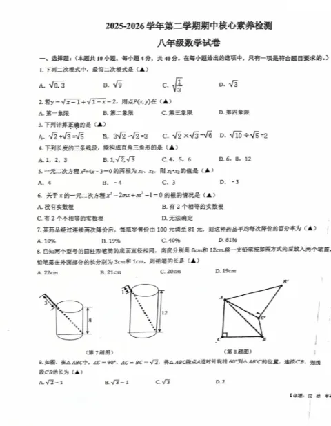 2026合肥市庐阳中学2026八年级下期中考数学试卷