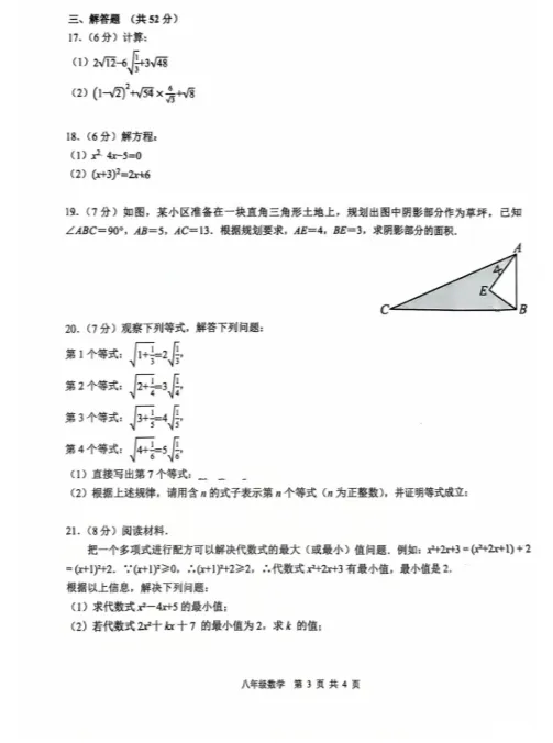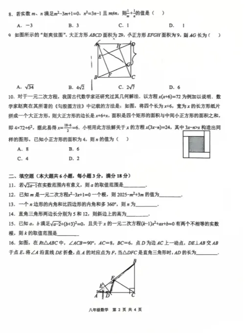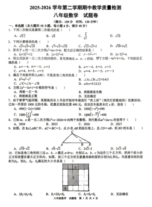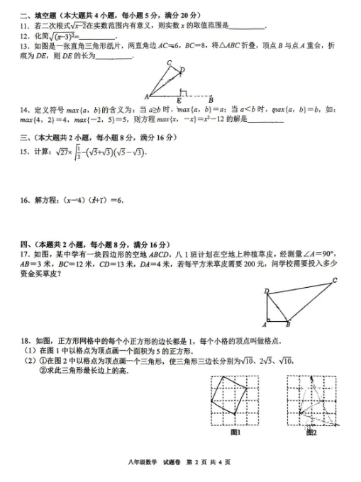 2026合肥市望湖48中2026八年级下期中考数学试卷