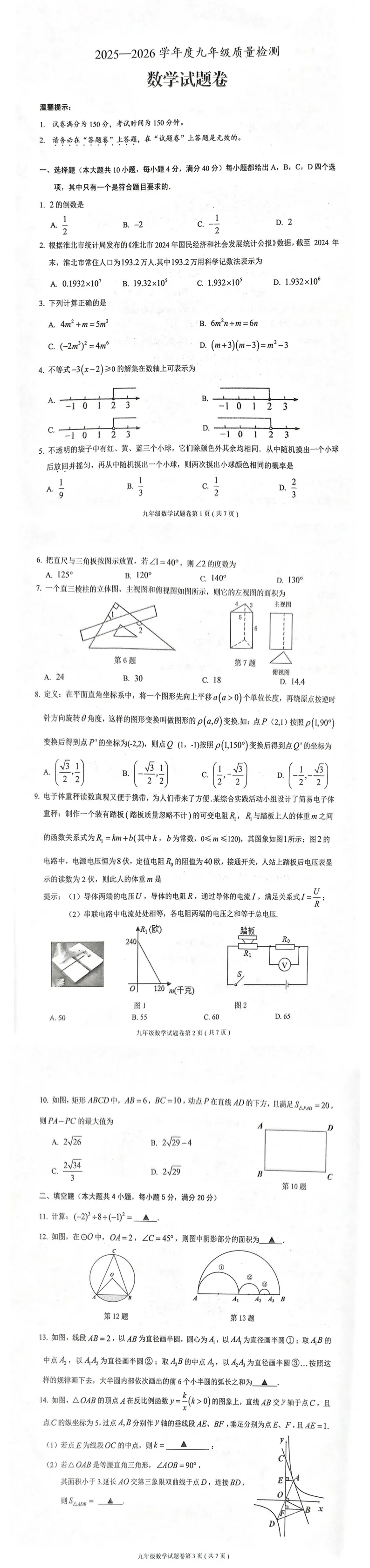 2026年安徽省淮北市中考数学质检试卷