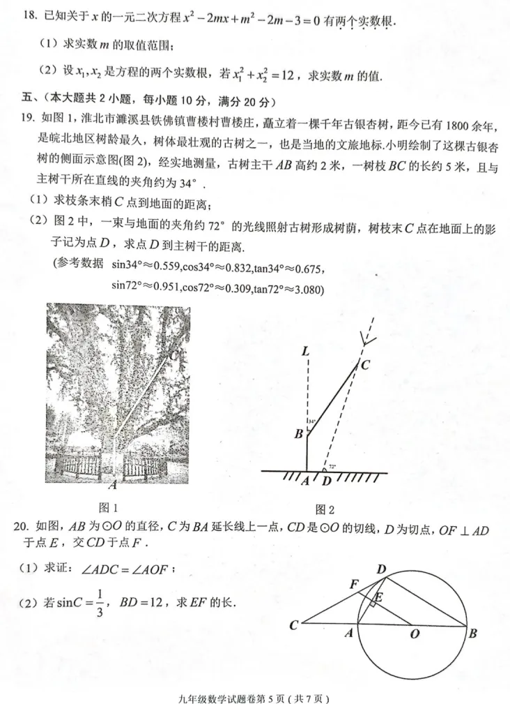 >2026年安徽省淮北市中考数学质检试卷