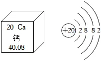 钙是人体骨骼和牙齿的重要成分,主要以羟基磷酸钙[Ca10(PO4)6(OH)2]的形式存在。钙在元素周期表中的信息及原子结构示意图如图。回答24~26题: