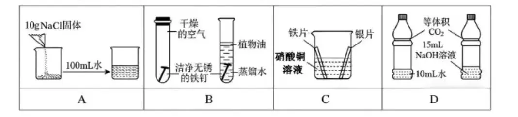 D.图D是先用酚酞溶液在白纸上写出“北”字,再盖在碳酸饮料上方,颜色由紫变红
