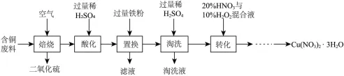 39.(5分)硝酸铜可用于陶瓷着色、也可用于制备波尔多液。利用含铜废料(含Cu、CuS)制备Cu(NO3)2 • 3H2O晶体的流程如图。