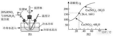 (5)从转化所得溶液中获得较大颗粒Cu(NO3)2▪3H2O晶体的方法是:蒸发浓缩、降温结晶、过滤、洗涤、干燥。结合信息和图2分析,降温结晶时需要控制的条件是_________。
