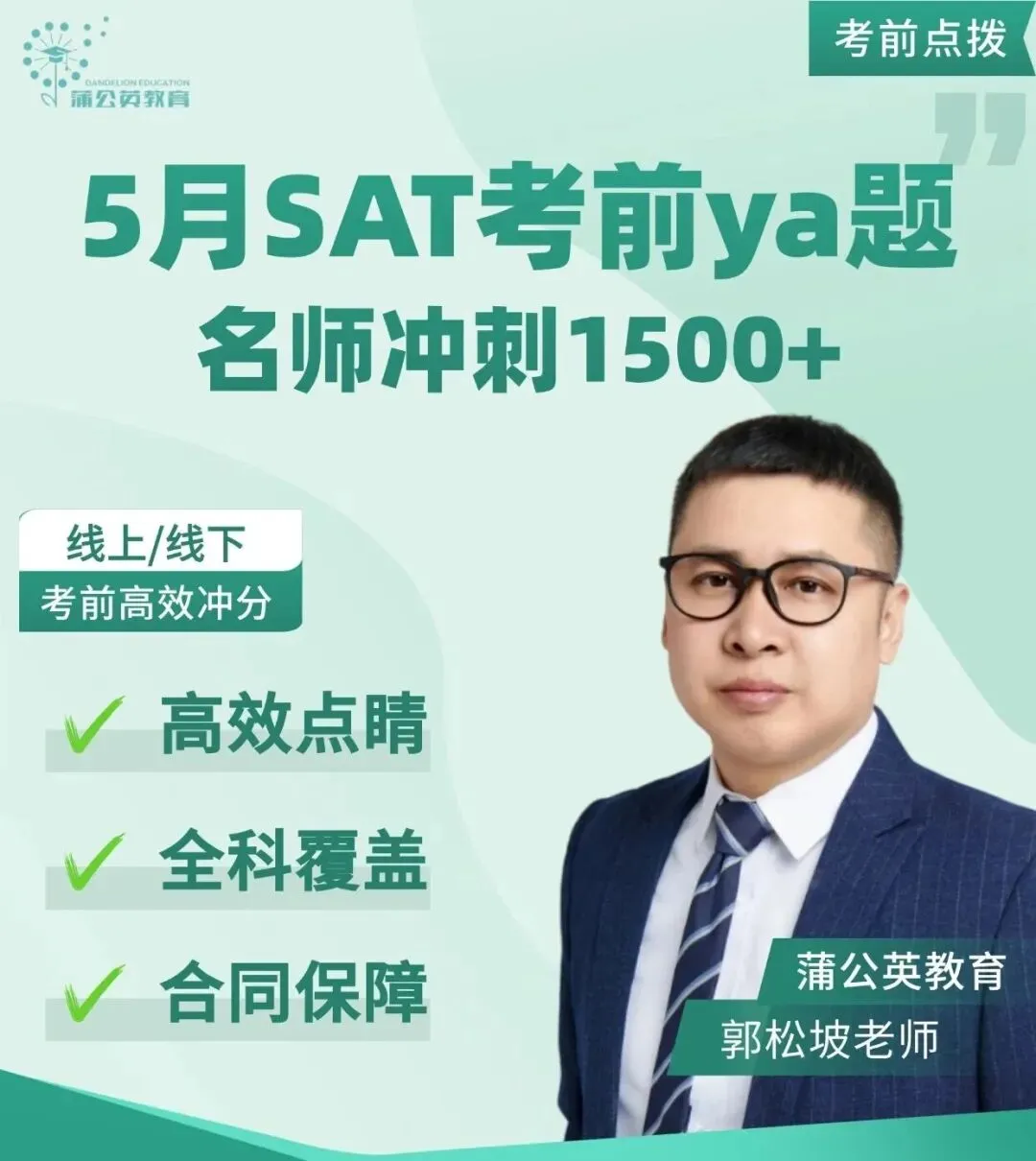 距离5月SAT考试备考考前越来越近,抓住最后的冲刺机会,选择上海蒲公英5月SAT考前押题班,让专业的力量助你在考试中脱颖而出,取得理想成绩!
