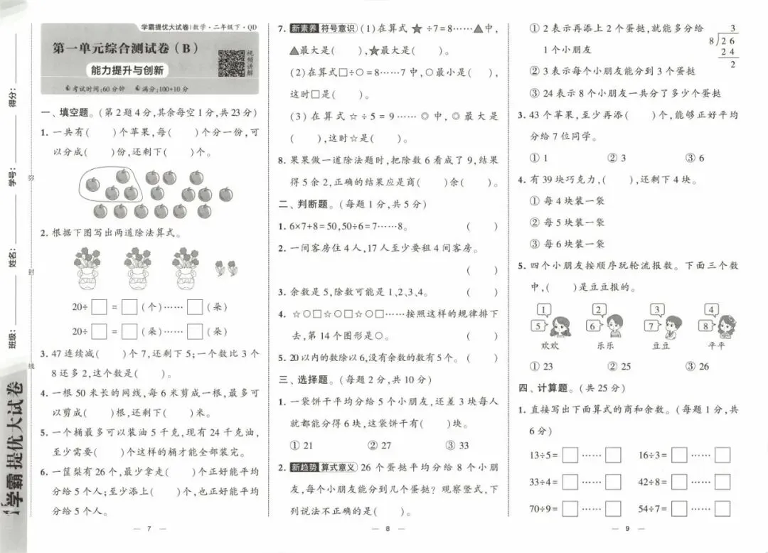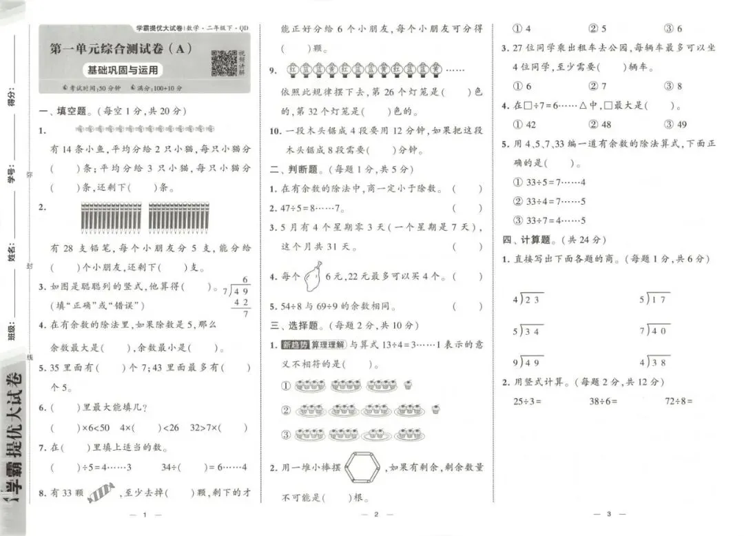 《学霸提优大试卷》青岛版数学1-6年级上下册丨PDF电子版,可下载打印,链接:https://pan.quark.cn/s/c1ab33998a81