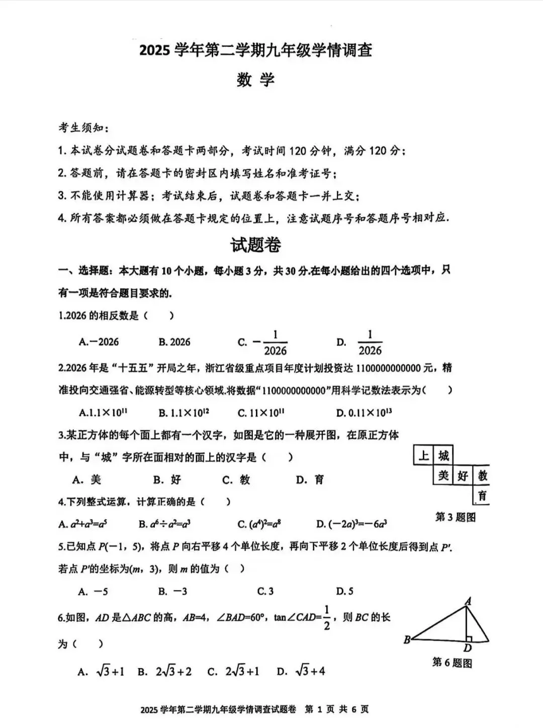 >上城一模数学试卷