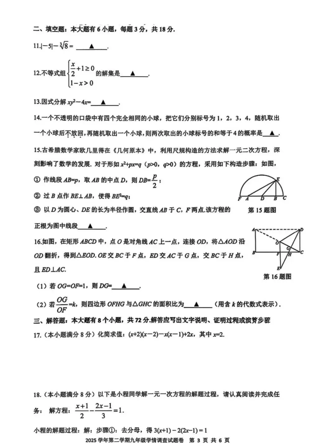 2024年江西中考 | 试卷和答案(文末可自行下载PDF版)