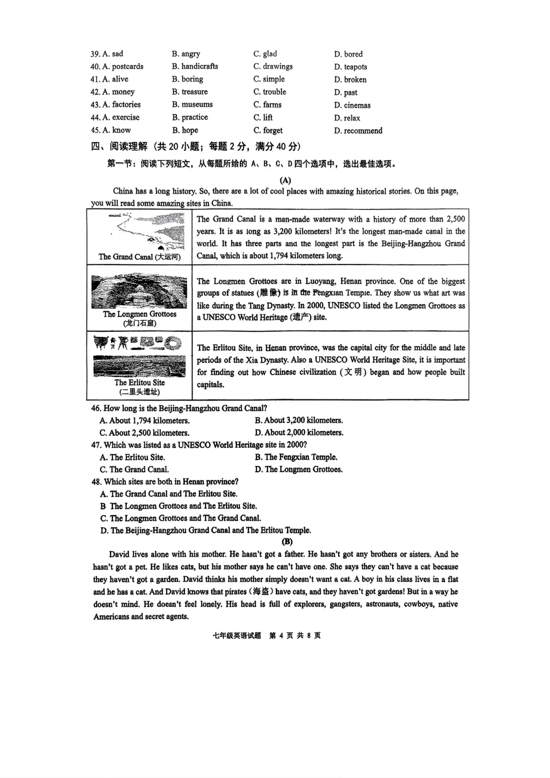 今日试卷,新海实验中学七年级英语期中试卷