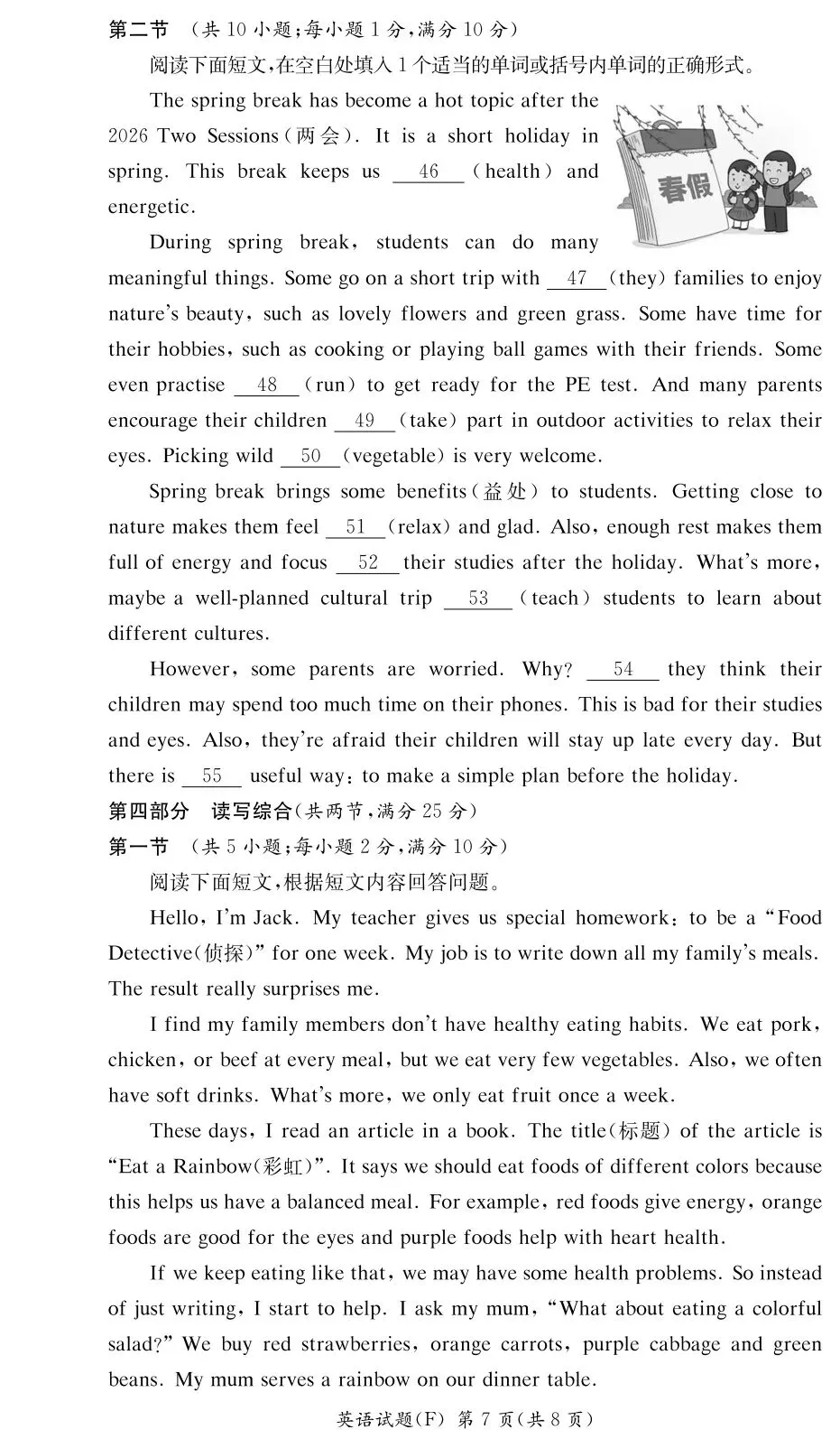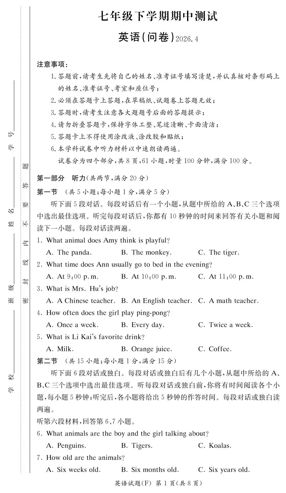 26上期中卷 | 雅礼集团初一联考英语试卷