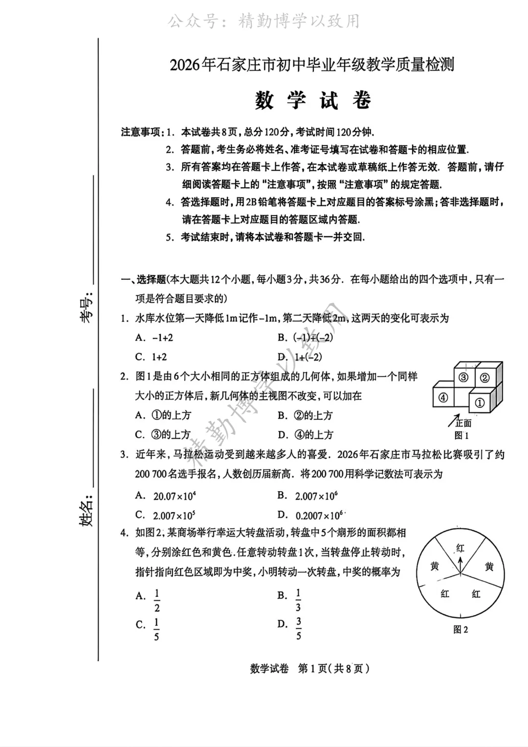 >2026.4.29石家庄市中考一模数学试卷
