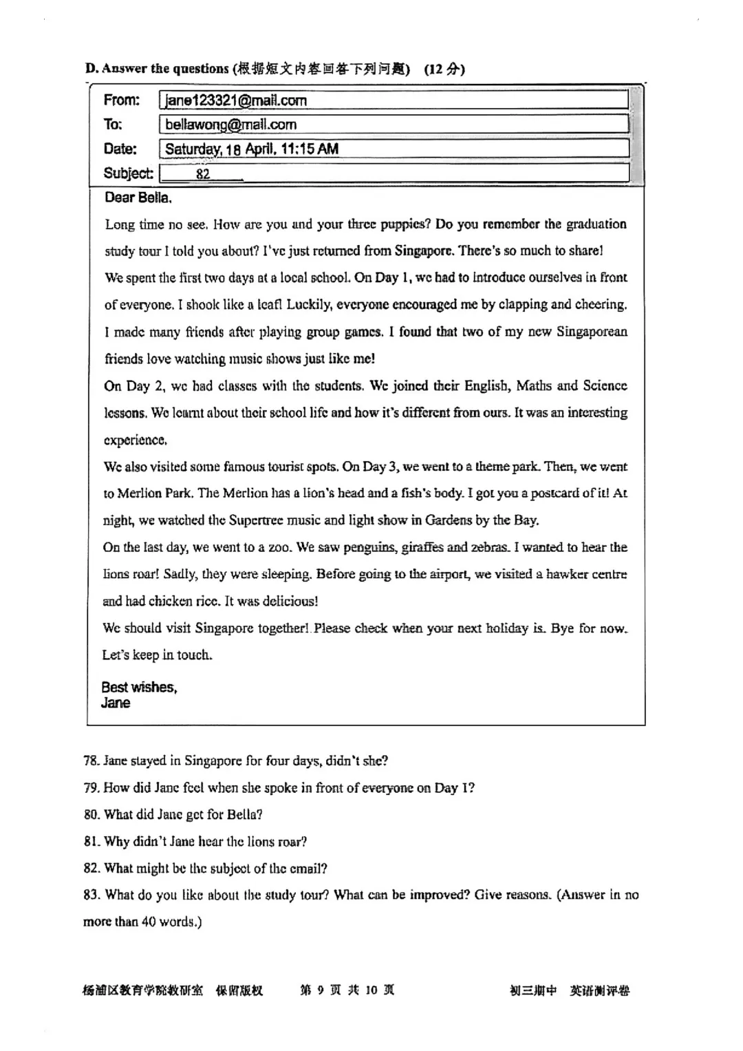 试卷分享:2025学年高一年级第一学期嘉兴八校联盟期中联考英语科