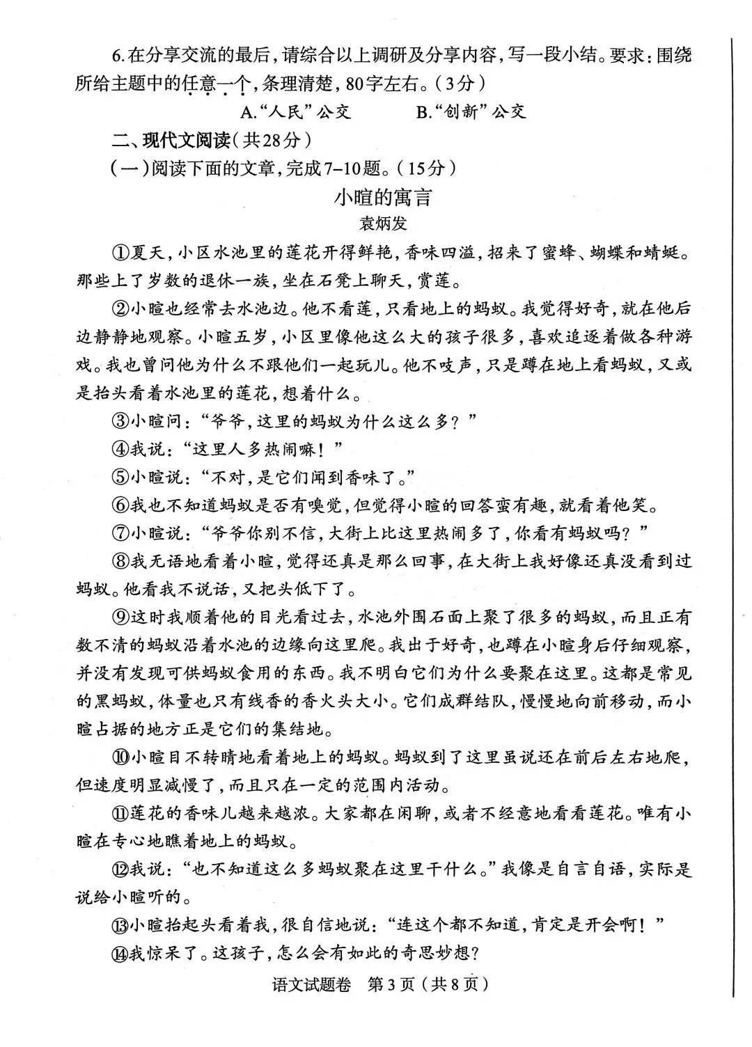 2026郑州中招适应性测试语文试卷,更多科目陆续更新!