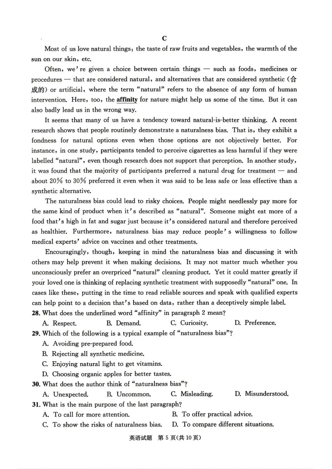 C 篇:naturalness bias 自然偏好偏见(议论文)