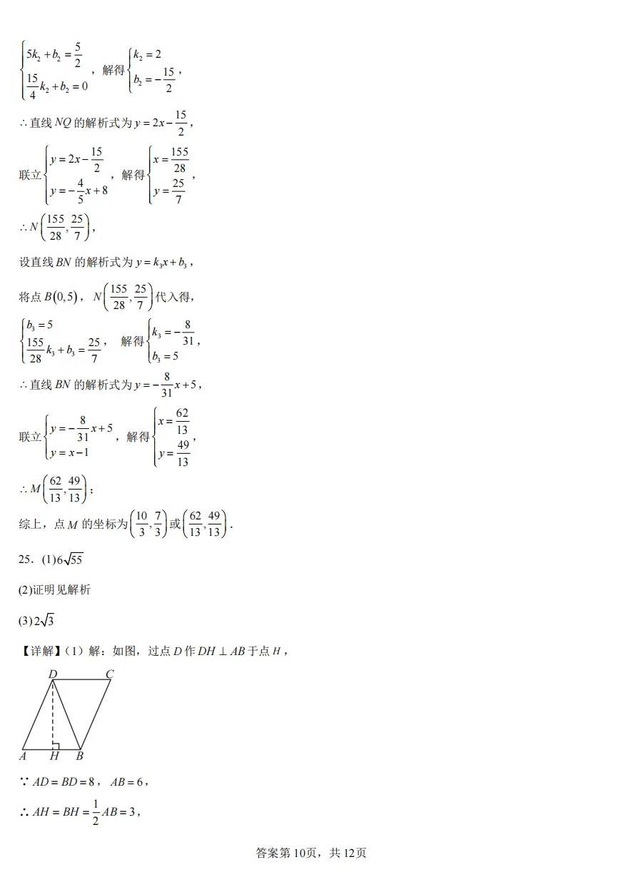 2026.4长郡集团八下期中联考数学试卷及答案