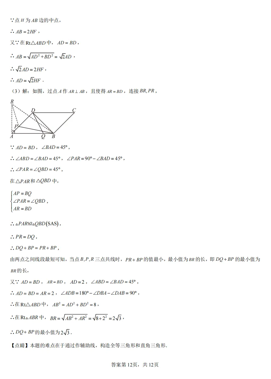 全解全析2026普陀初三二模数学试卷