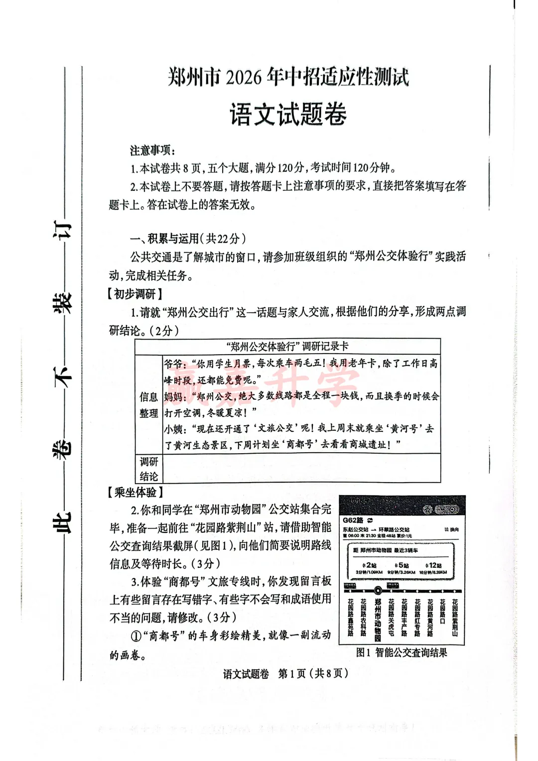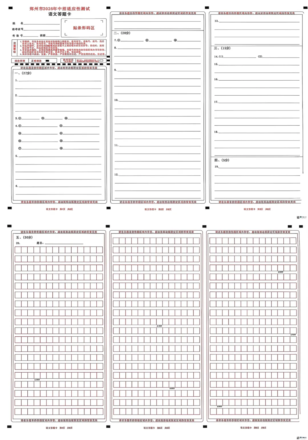 郑州市2026年中招适应性测试【语文试卷】+答题卡