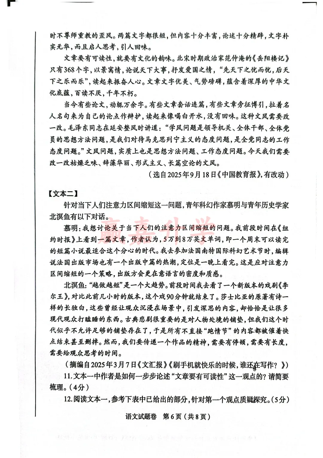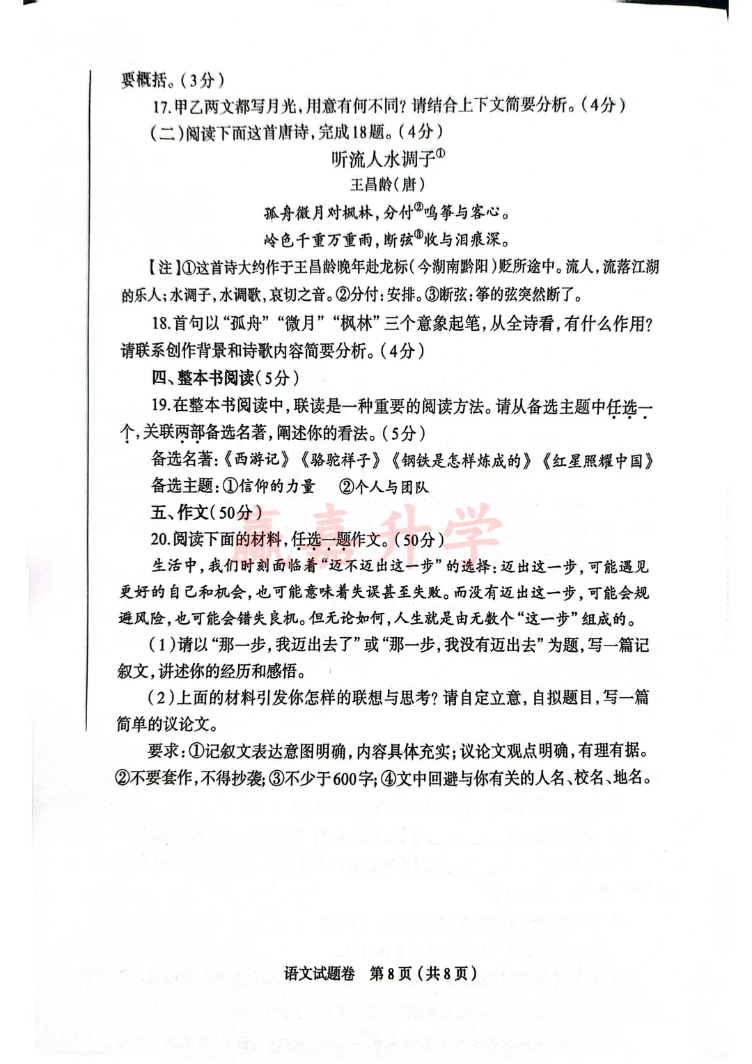 2026安阳市中招一模试卷-语文试卷答案