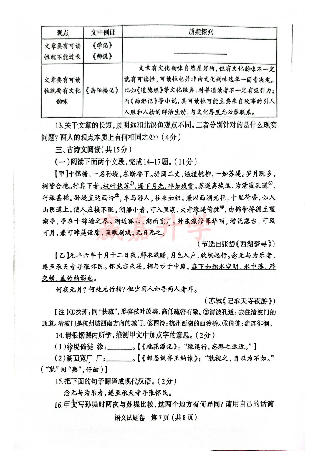 2026届浦东新区初三二模语文试卷(答案版)