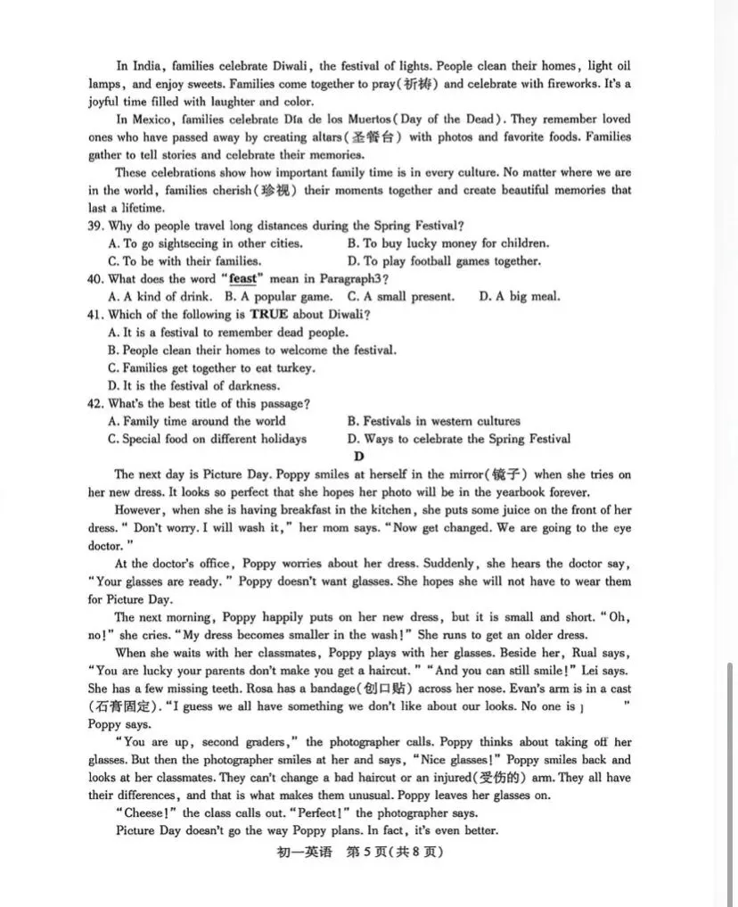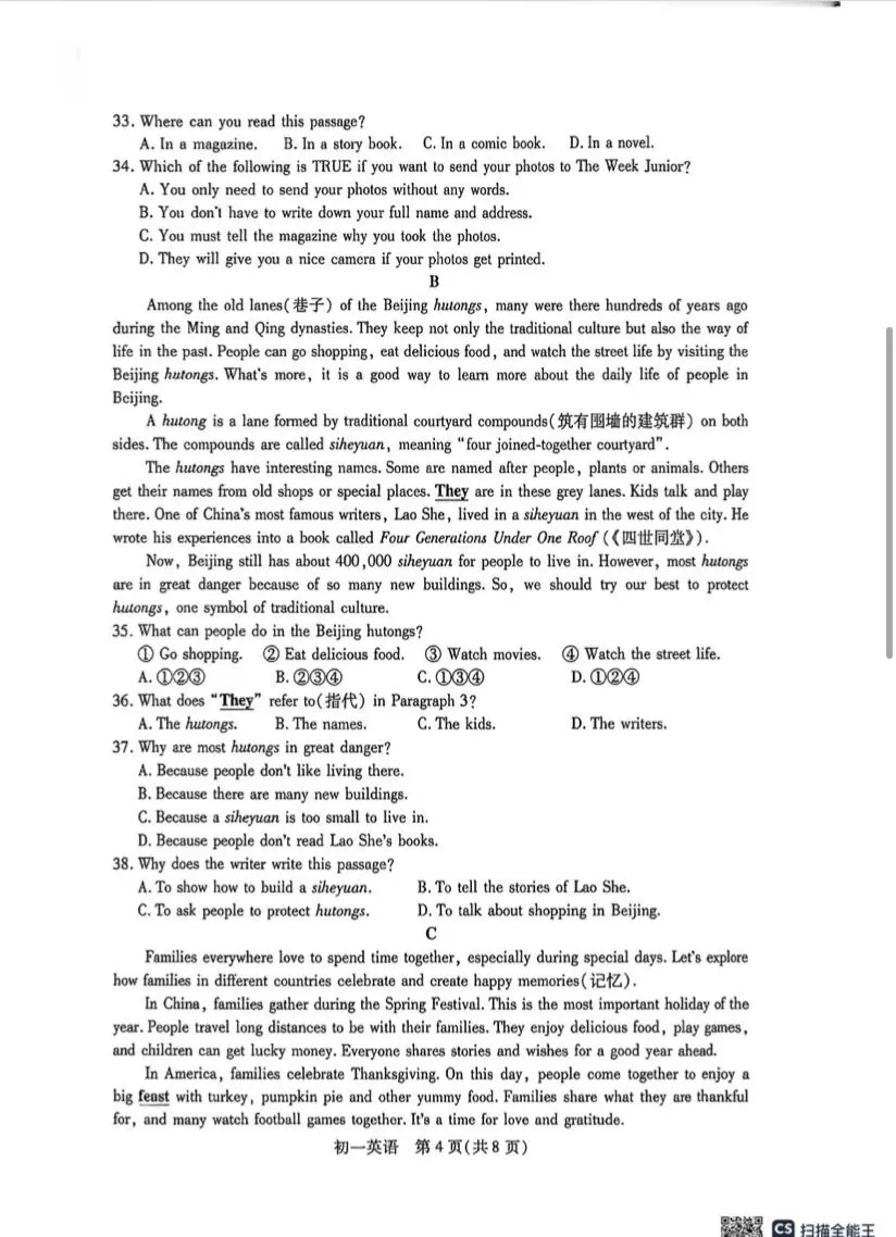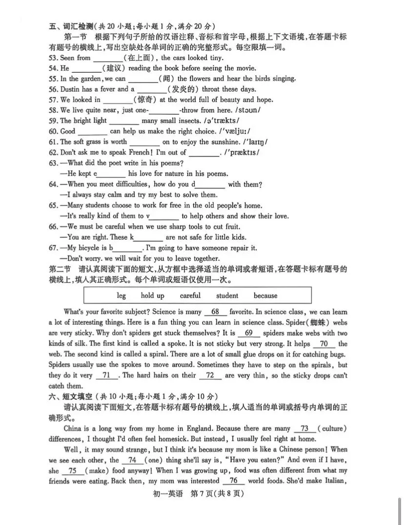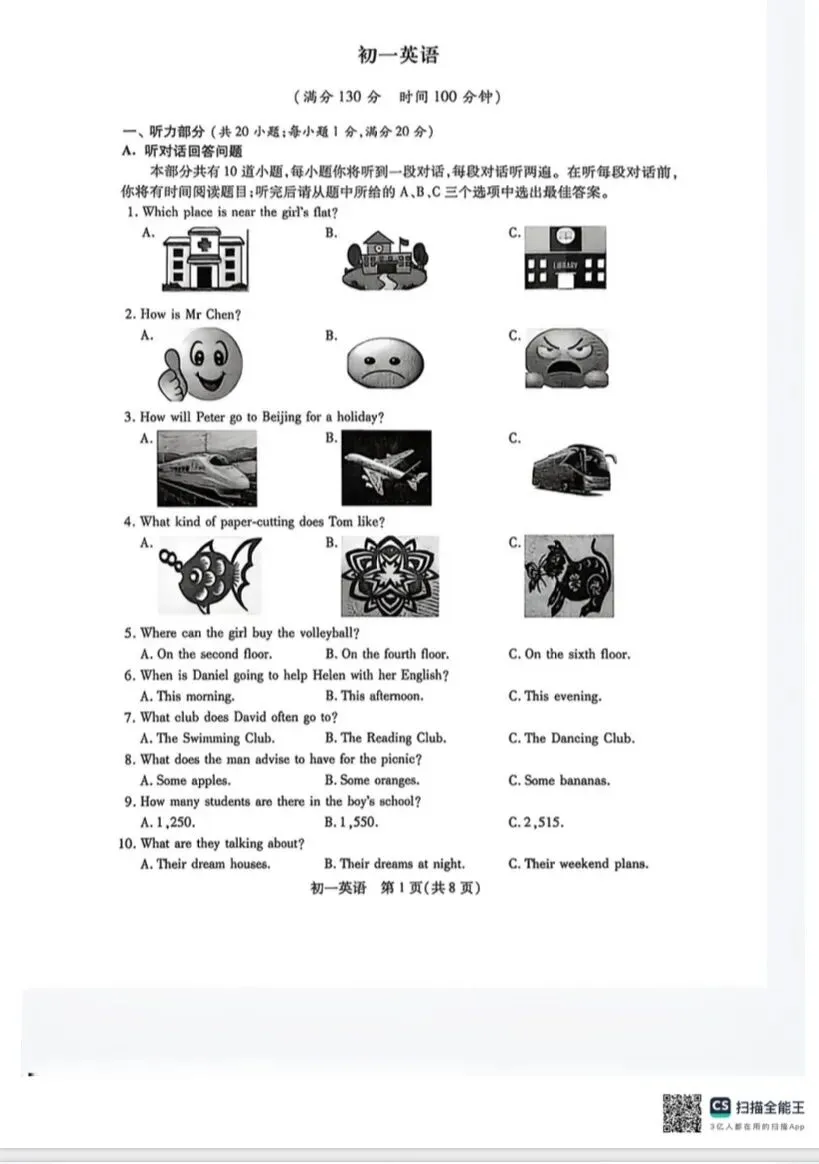初一英语期中考试卷附答案