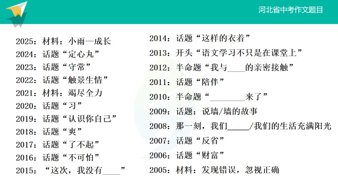 1.虽然这次作文题目形式是话题,但受去年中考的影响,材料作文的审题、分析、写作思路、扣题要练一下。提前准备素材。