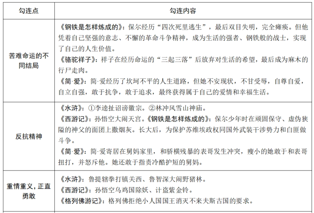 5.名著考查,肯定不是一部,河北省中考的11部名著要熟记基础考点,然后分析名著间的勾连,可参考下表。