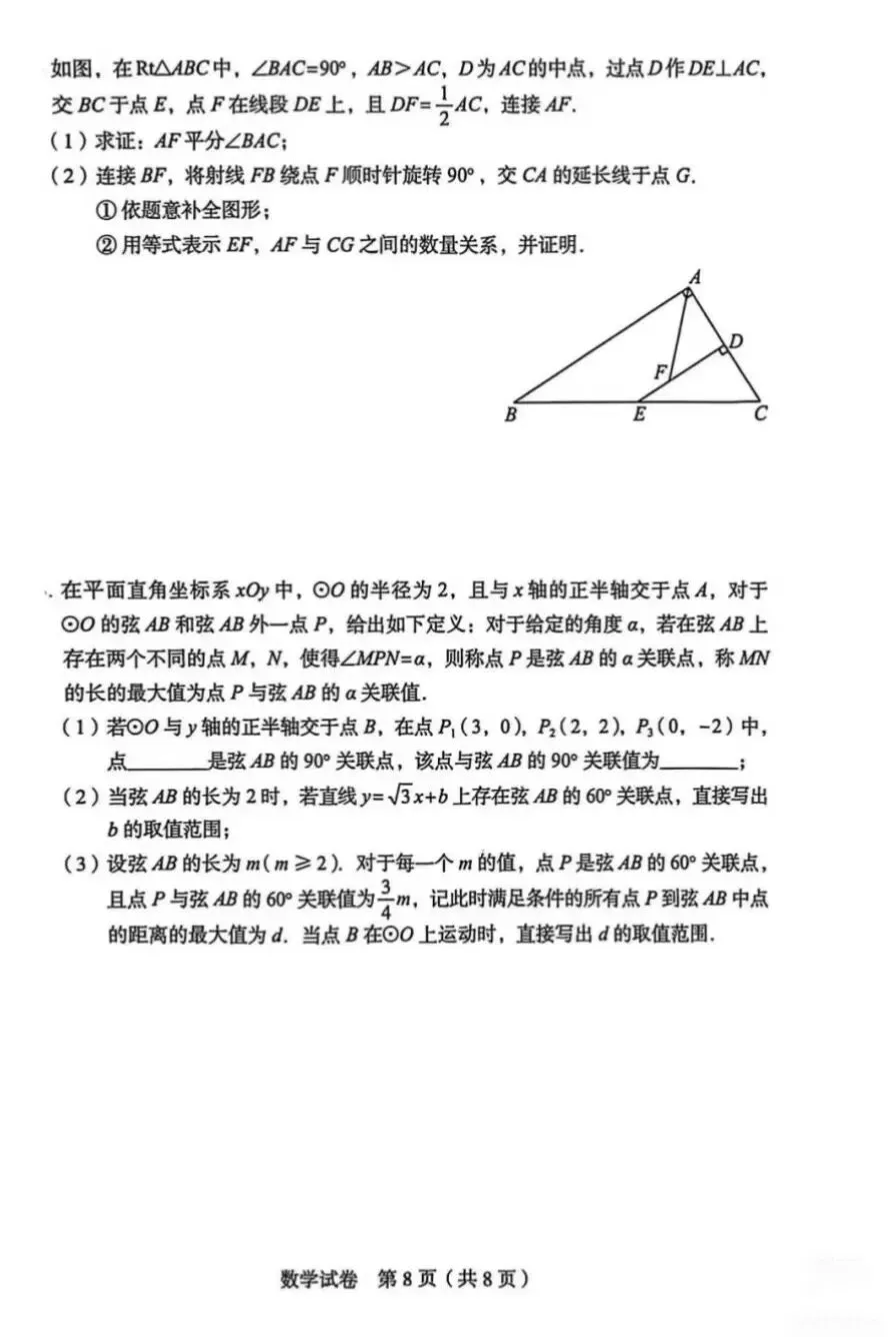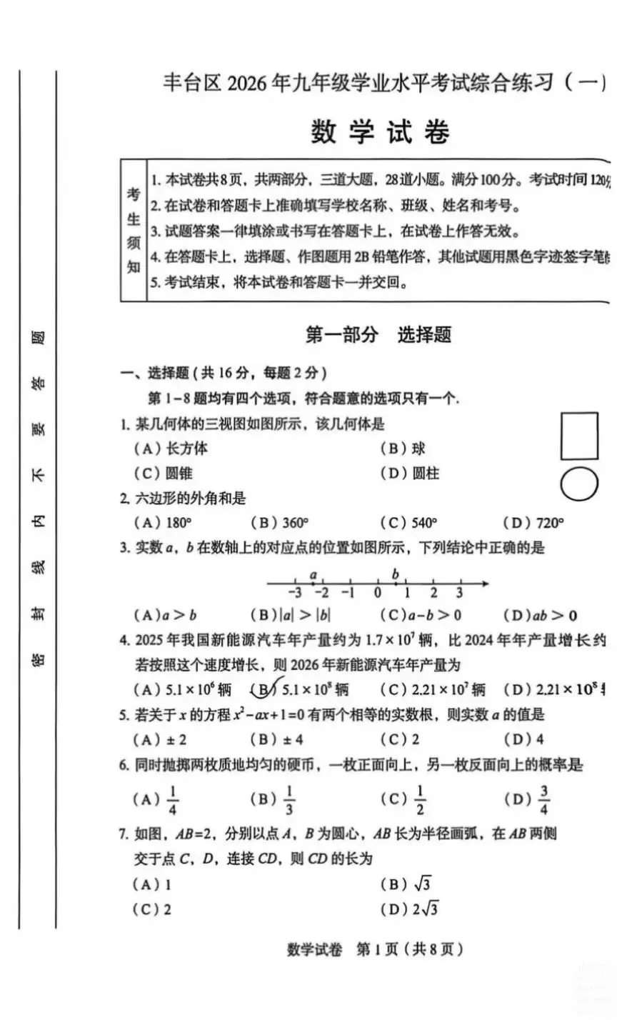 >2026丰台初三一模数学试卷