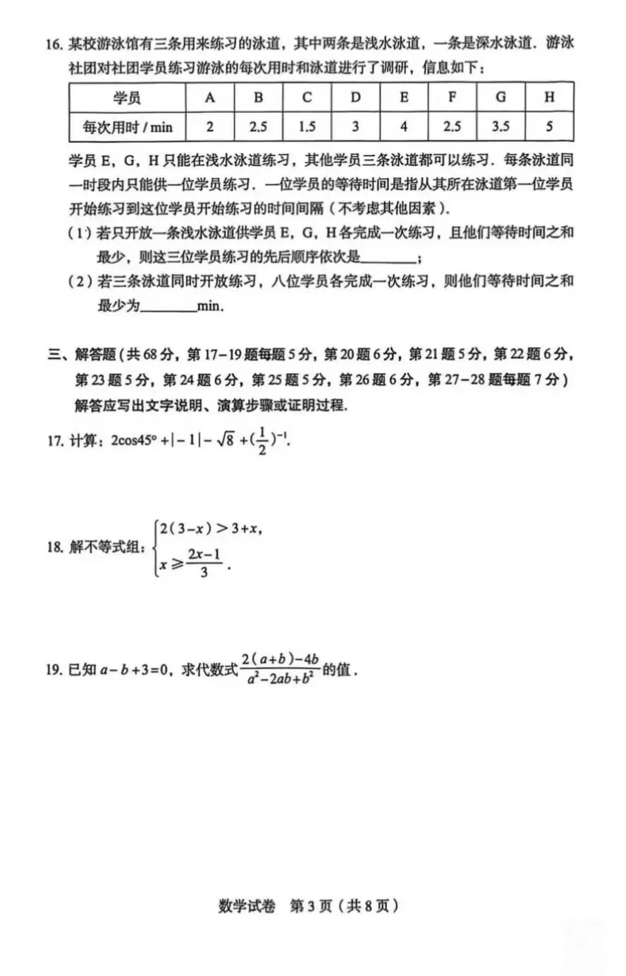 全解全析2026普陀初三二模数学试卷