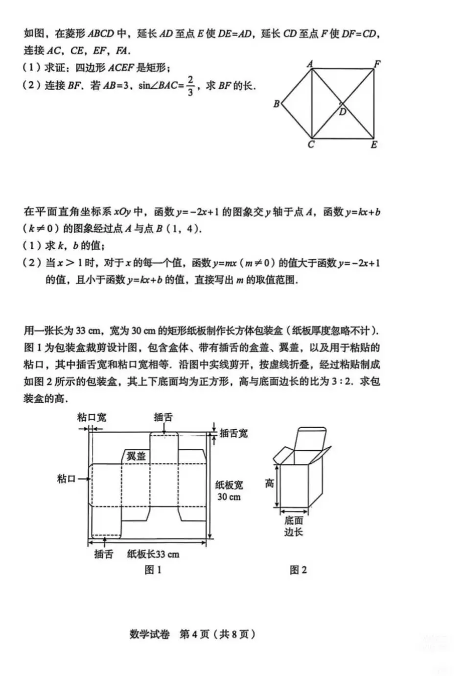 2026丰台初三一模数学试卷