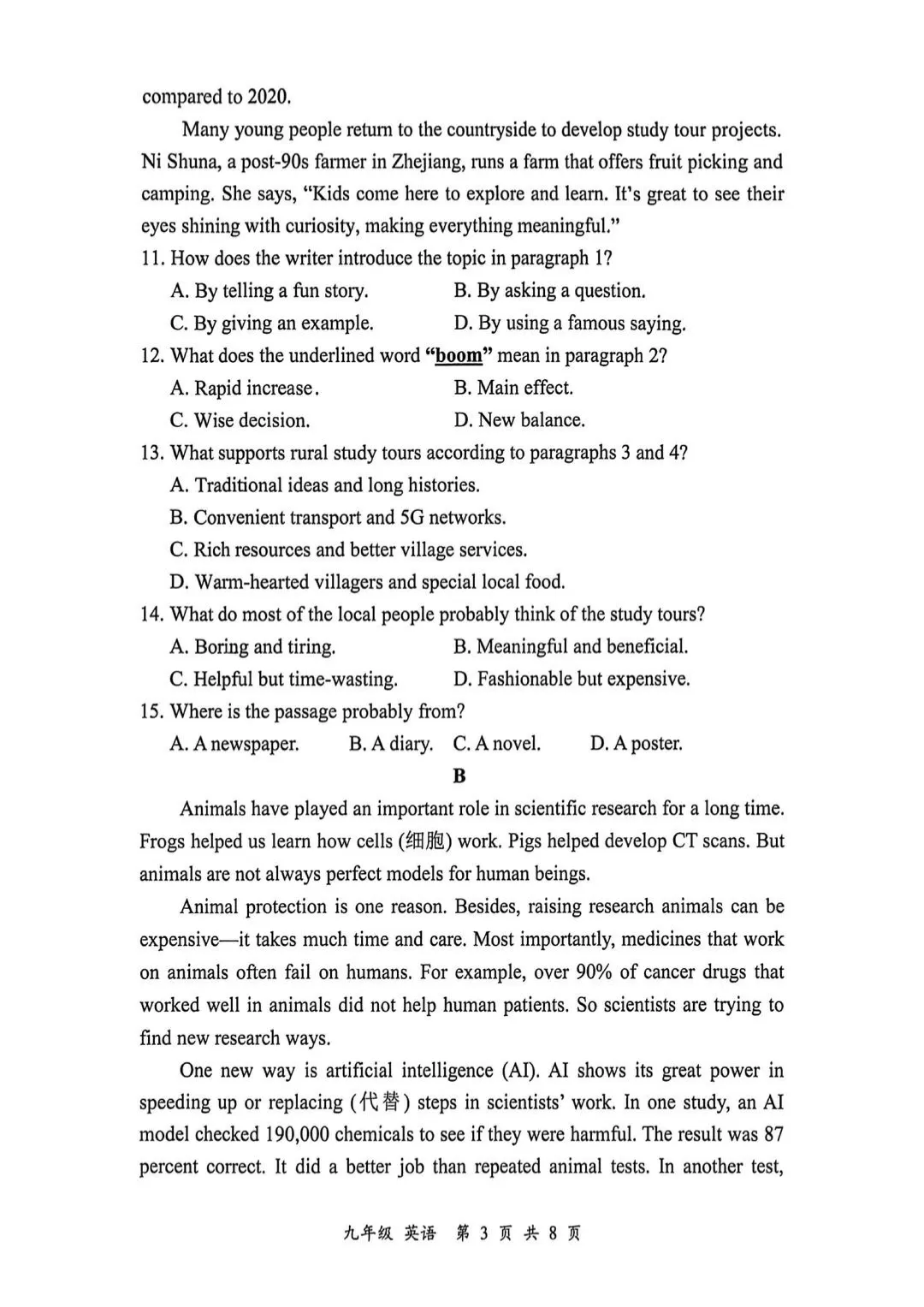 持续更新!2026年成都初三二诊各区试卷及参考答案,免费下载