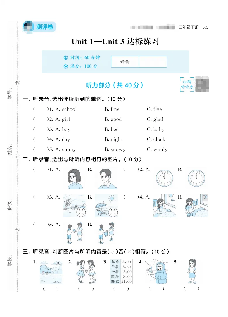 “达标”两个字不是随便说的——每套卷子紧扣教材重点,听力+笔试全真模拟,扫码即听,语速比课本略快一点点,练两周后娃说“学校听力变简单了”🎧
