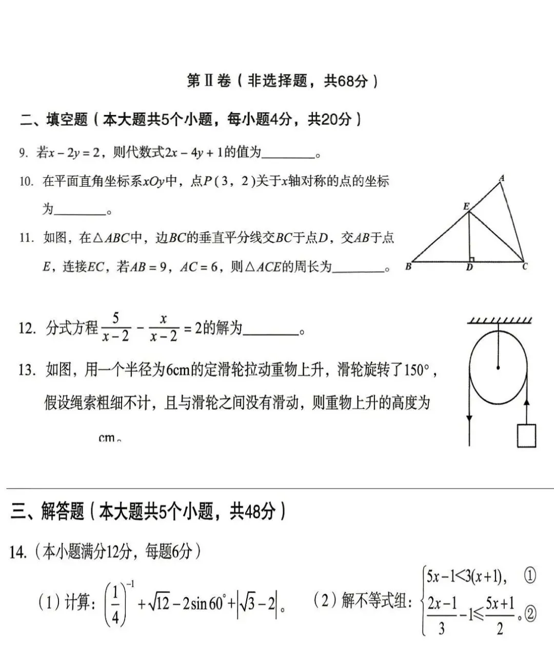 【黑白卷】2026年初中学业水平数学试卷黑卷