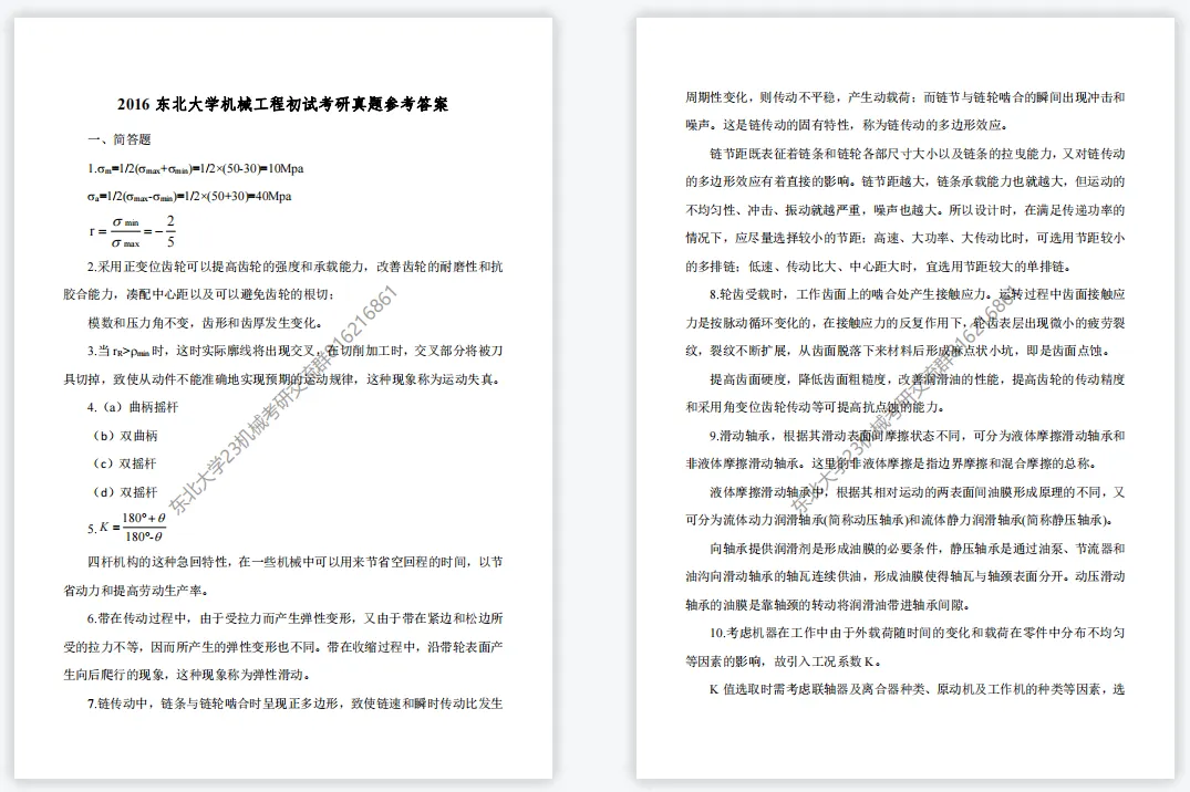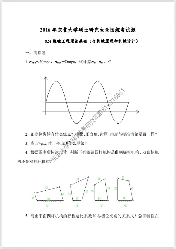>【考研真题】2016年东北大学(824机械工程理论基础)考研真题公布