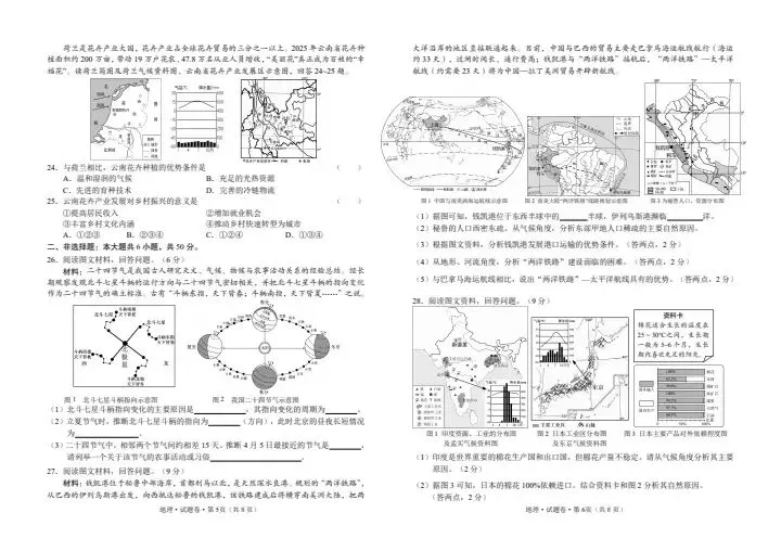 2026辽宁省一模试卷汇总下载,2026大连一模生物地理试卷答案