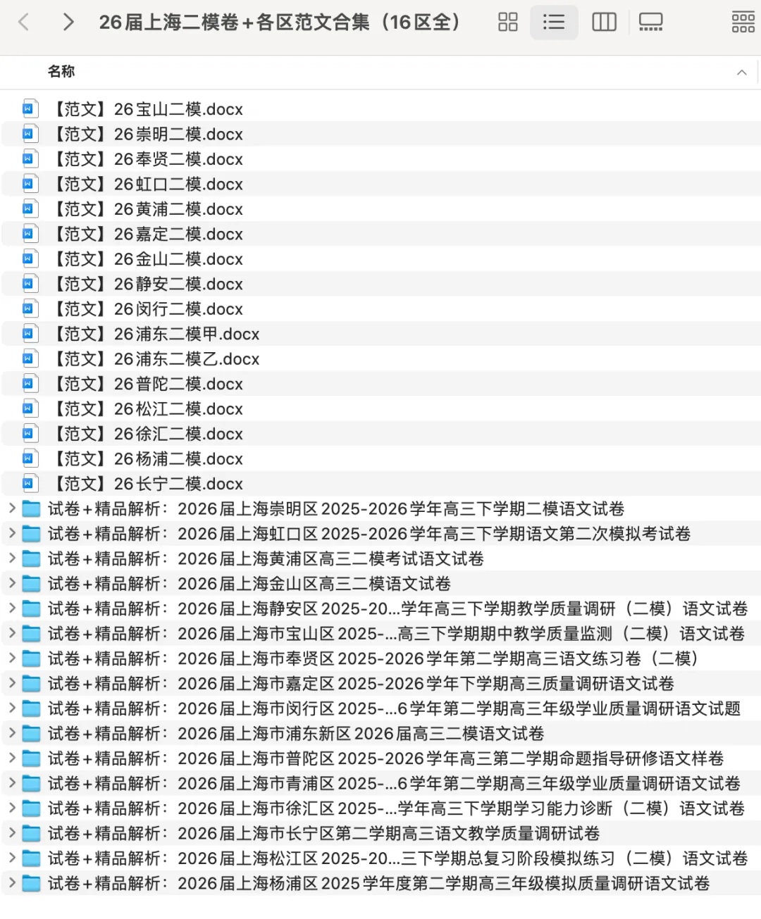 点击下方“爱心”与“拇指”,截图发送给本公众号对话框,即可免费领取【26届上海二模16区语文试卷+讲解+各区作文范文】,若截图后取消爱心与拇指,则无法领取。