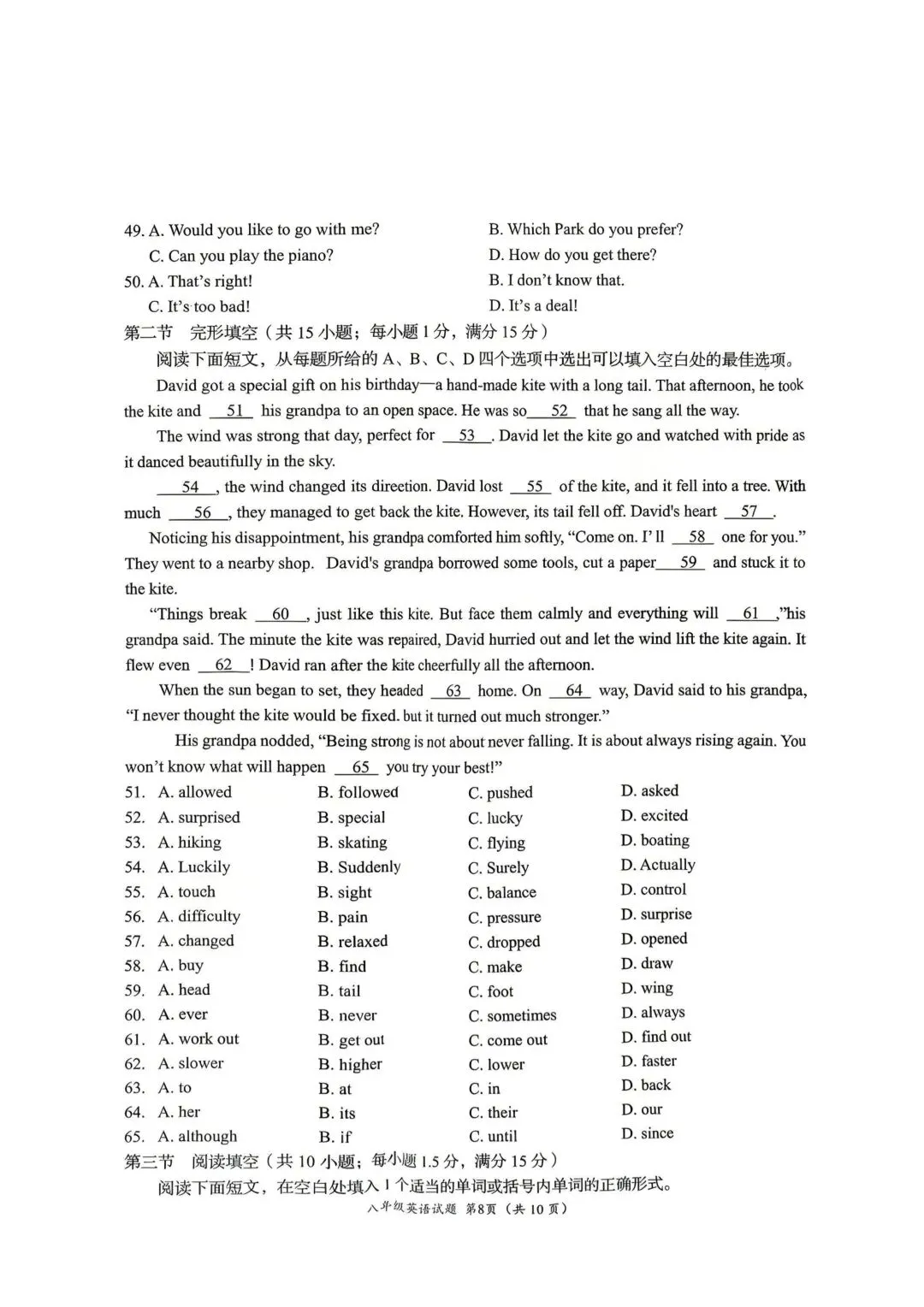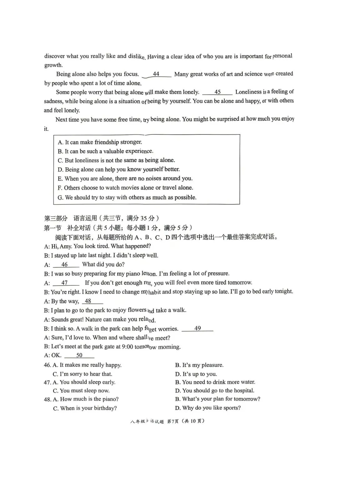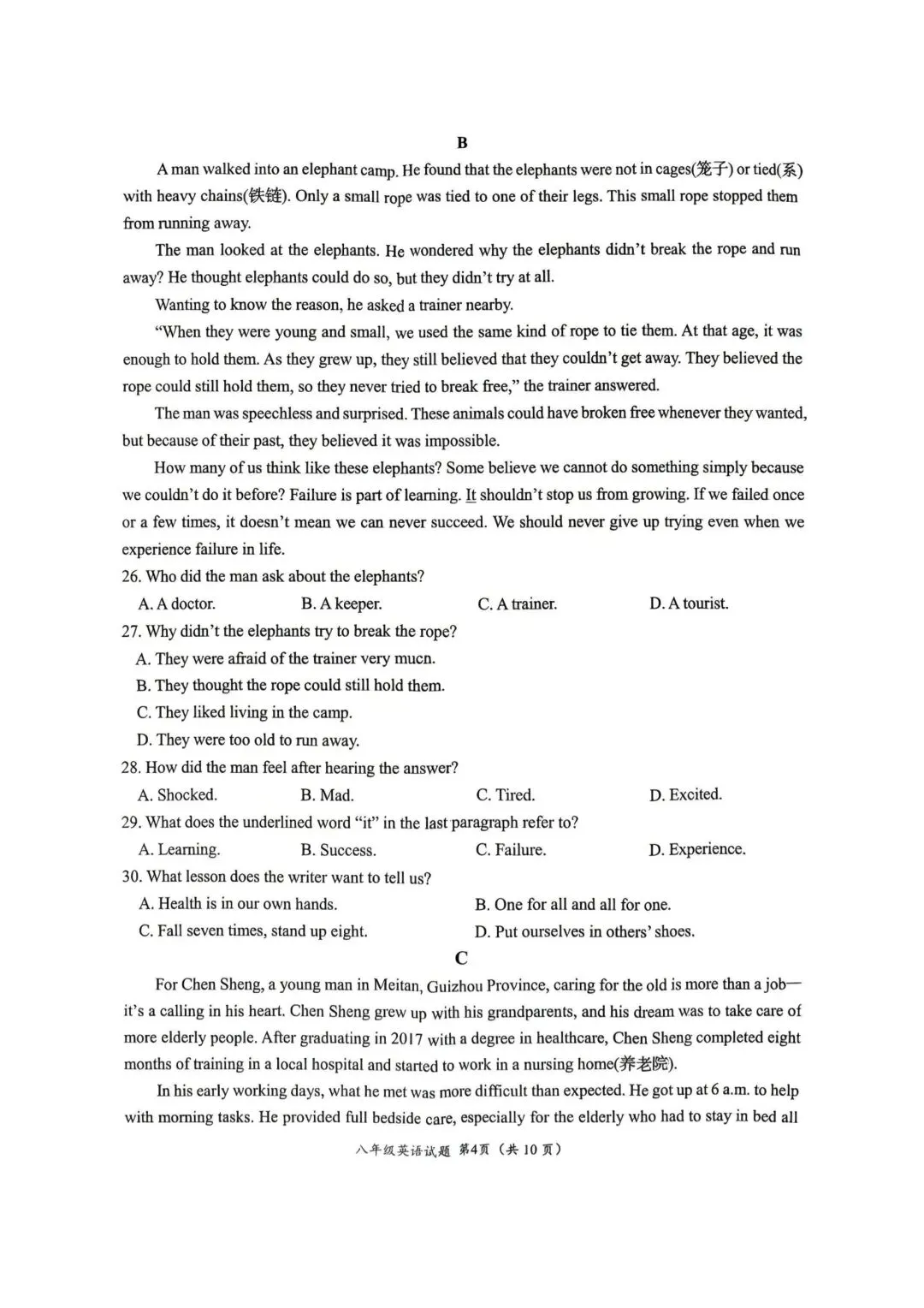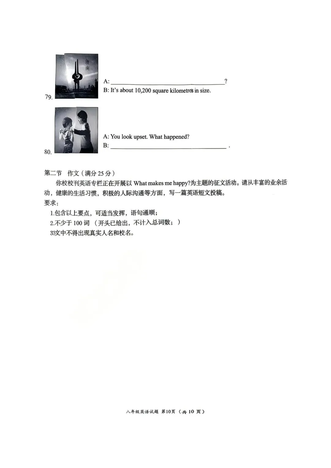 2026年济南槐荫区八年级英语期中考试试卷
