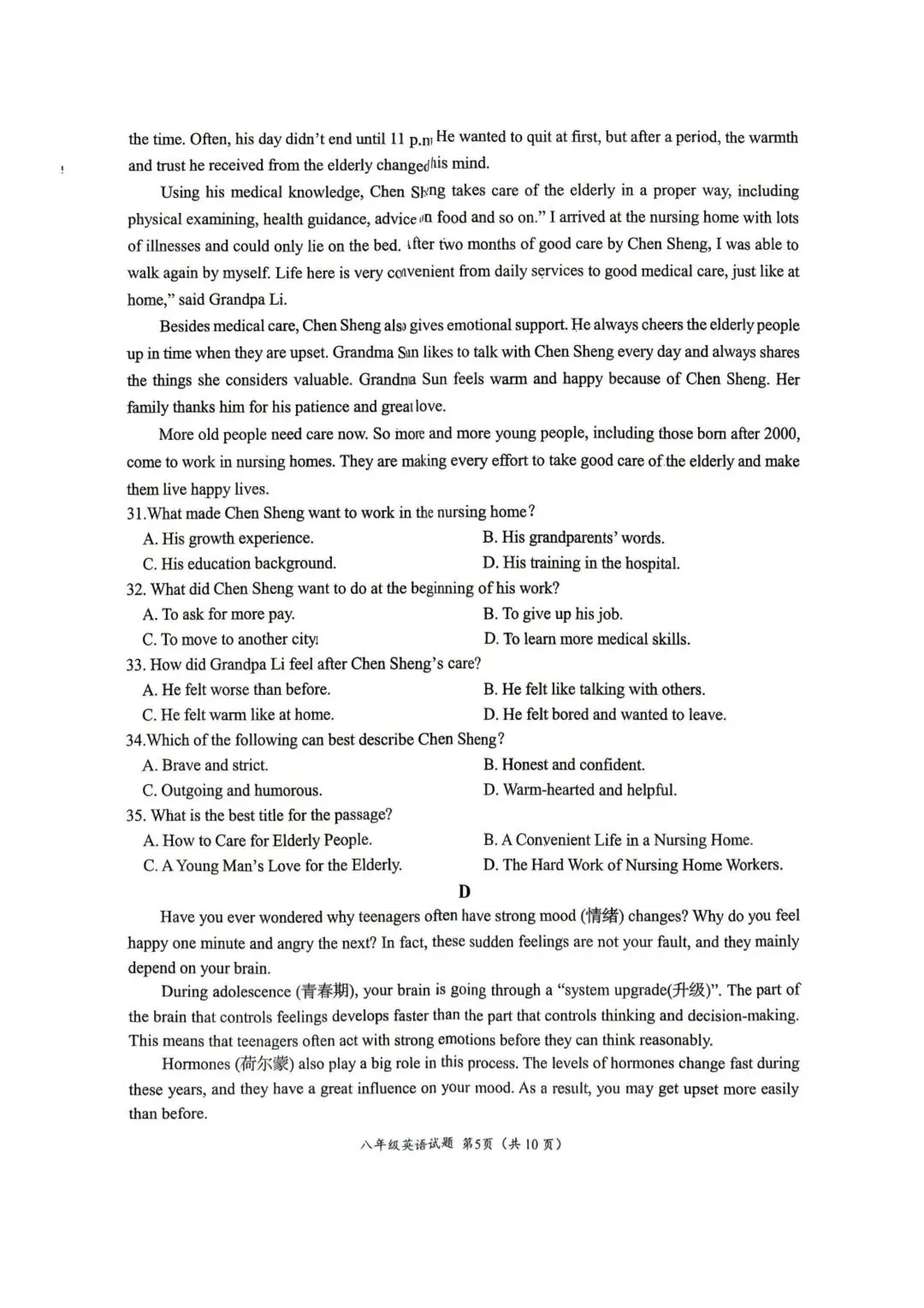>2026年济南槐荫区八年级英语期中考试试卷