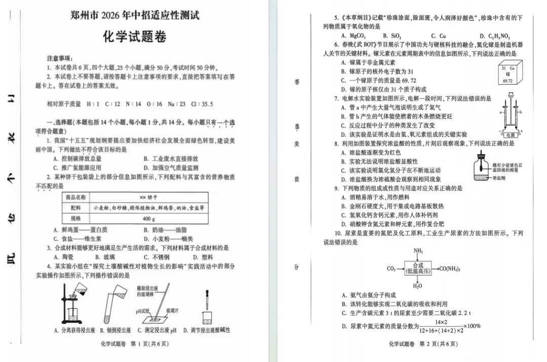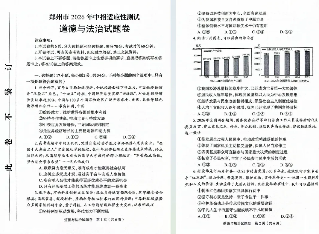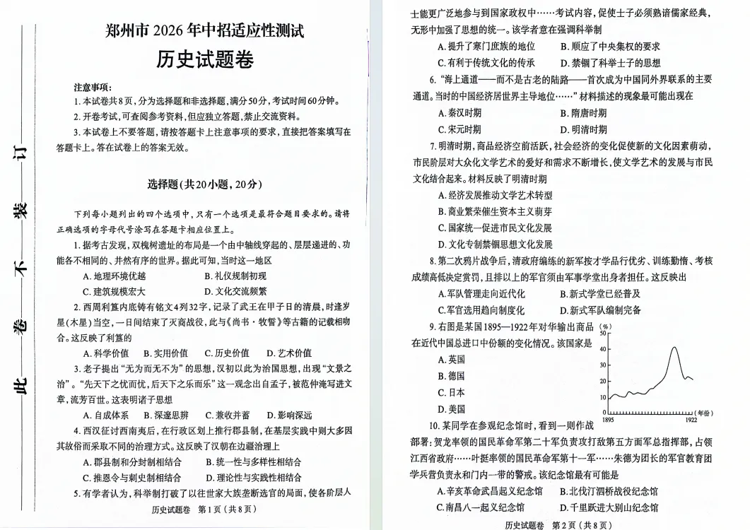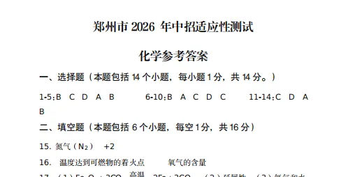 2026郑州中招模考真题试卷及官方答案出炉!语、化、道、史,点击下载!持续更新中...