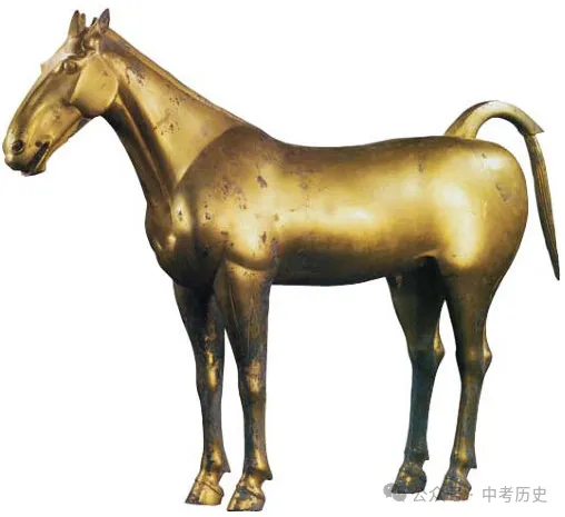 示例:西汉鎏金铜马既体现了当时高超的冶金工艺,也反映了汉朝与大宛之间的相互往来。