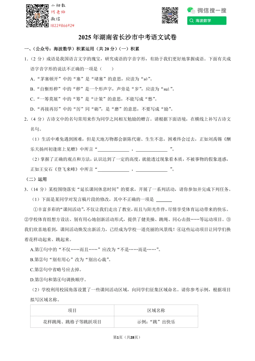 2009-2014年长沙中考真题试卷小程序免费下载 打印5分一页,满2.9元包邮