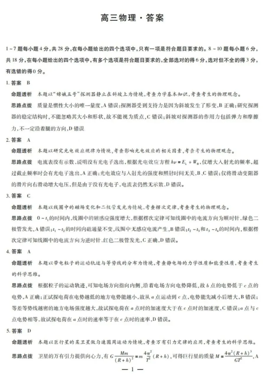 2026届顶尖计划高三4月大联考物理试卷及答案