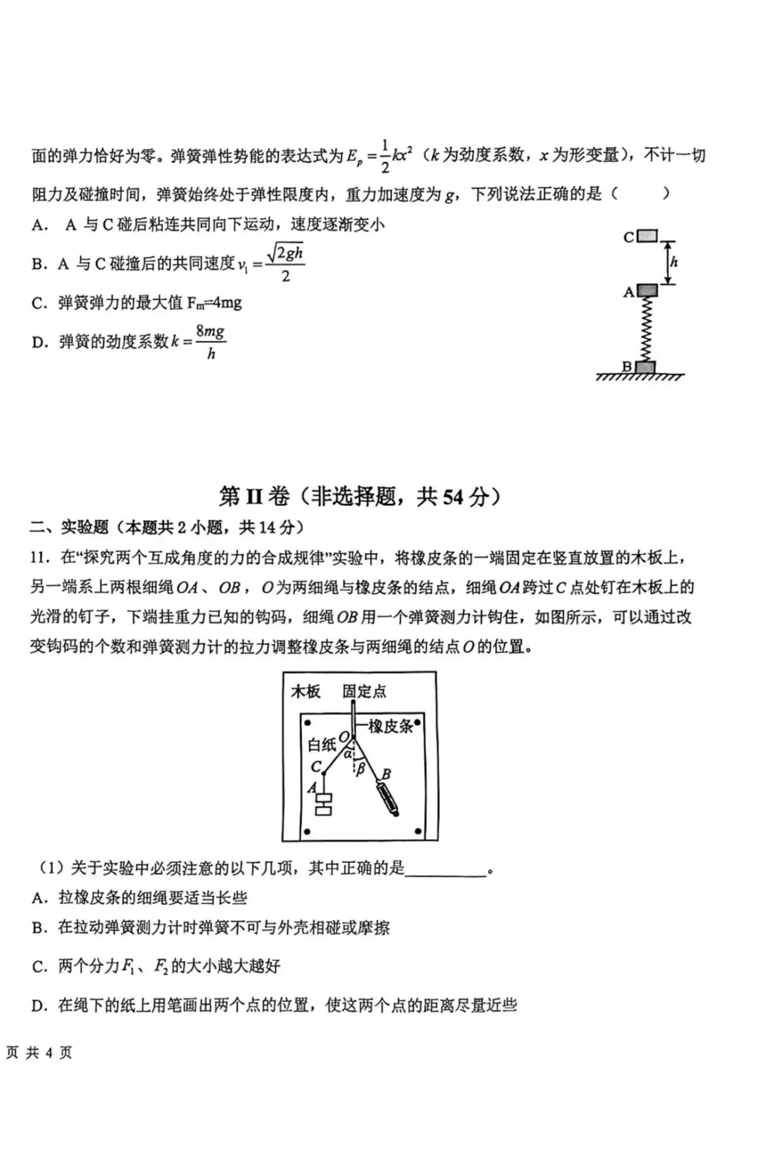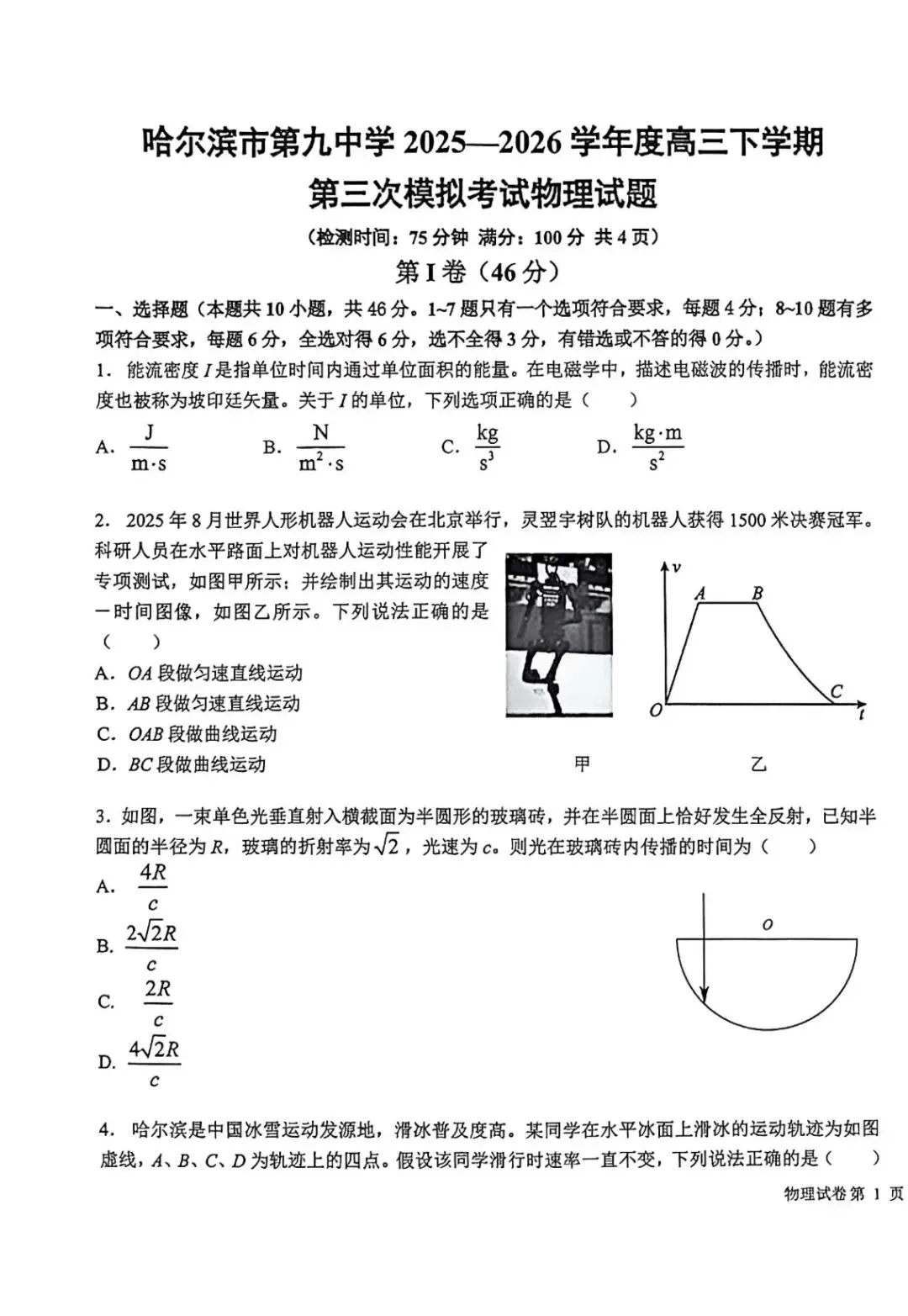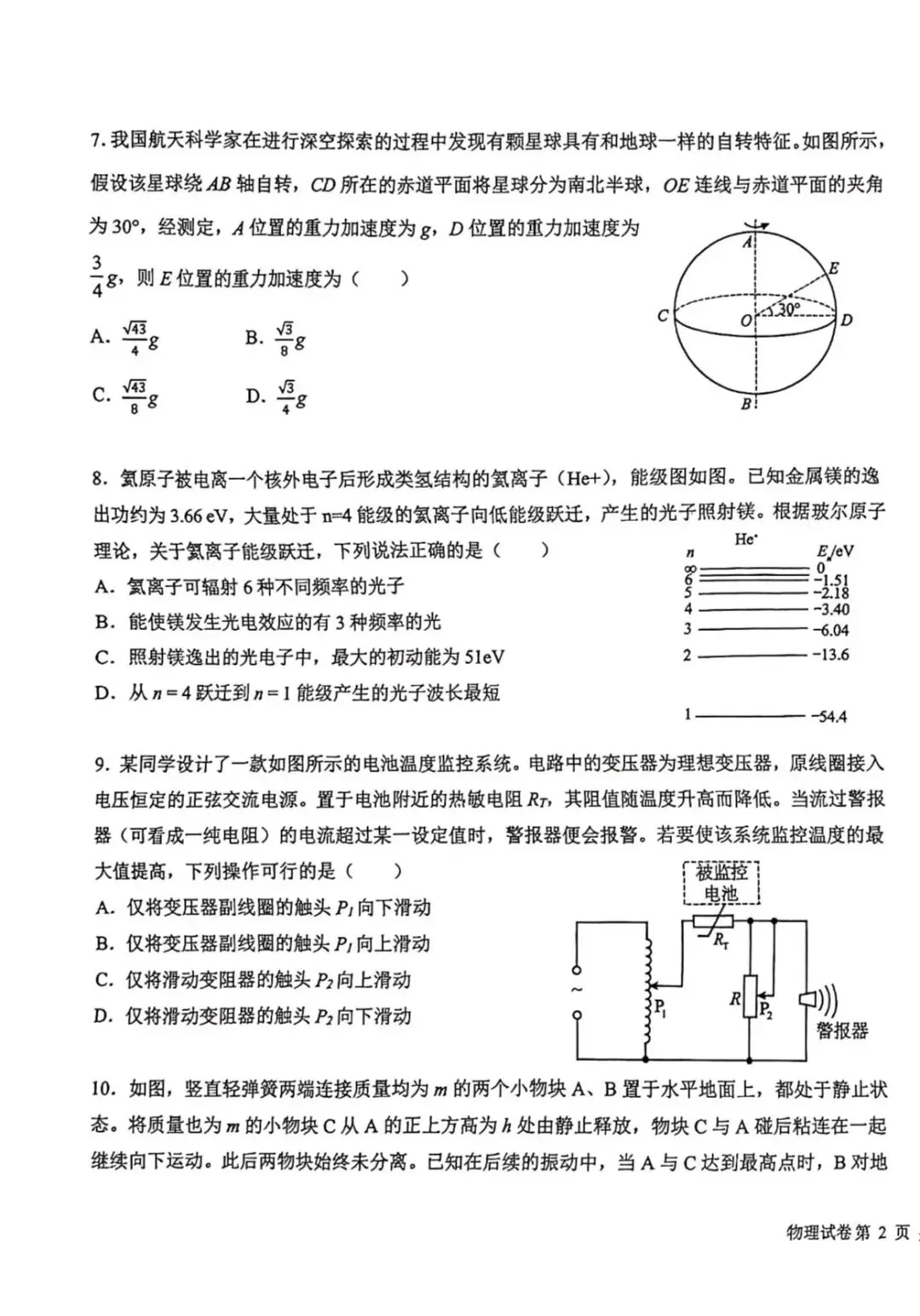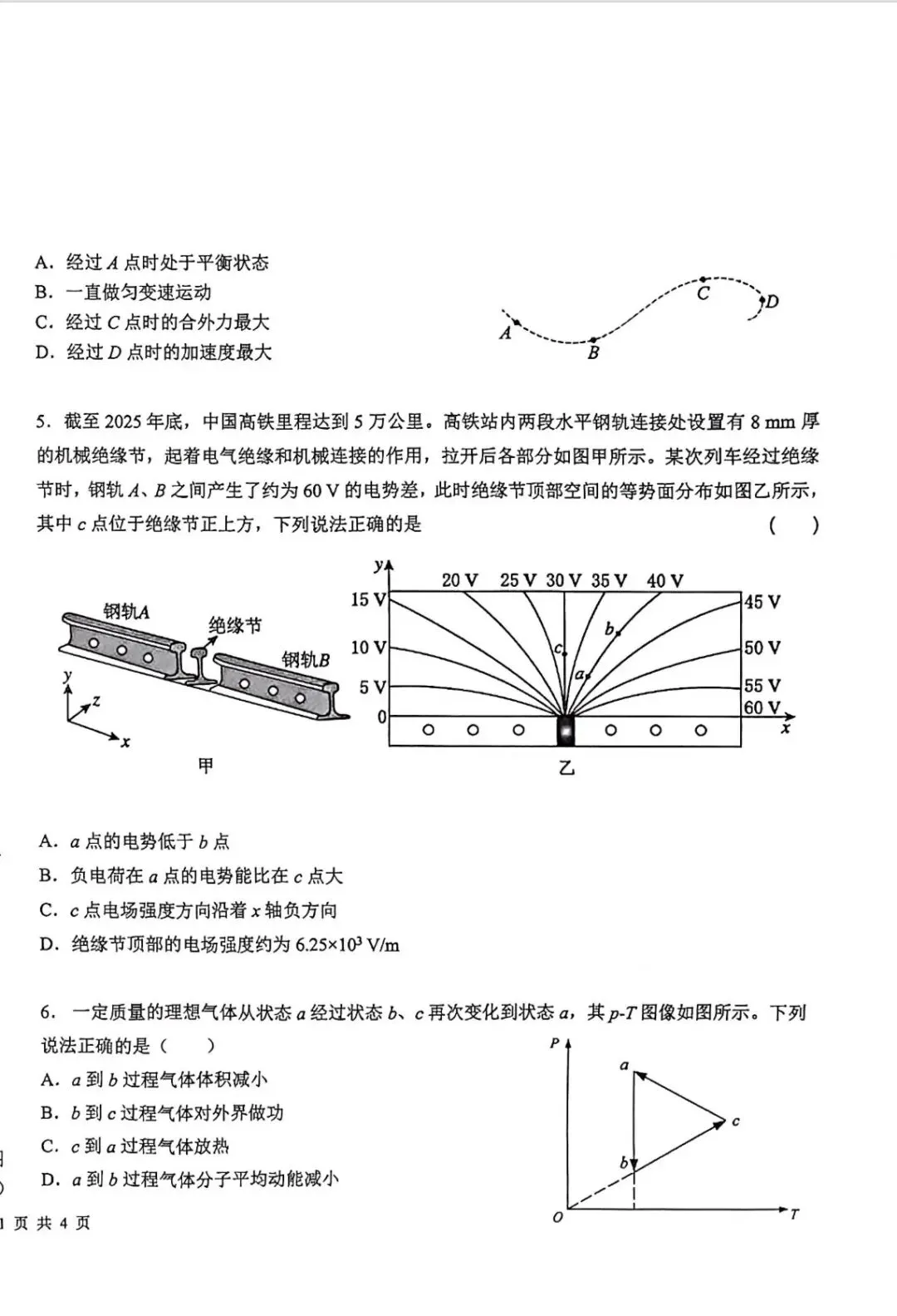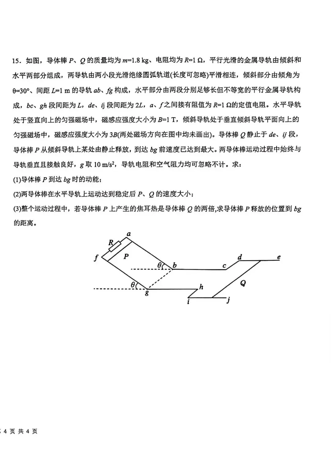 2026届顶尖计划高三4月大联考物理试卷及答案