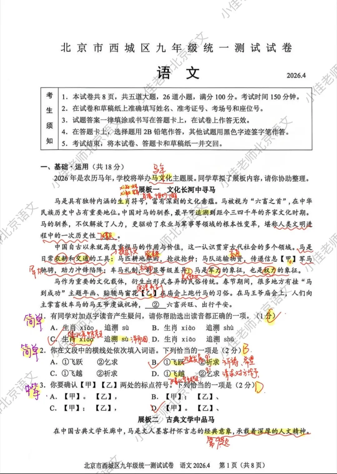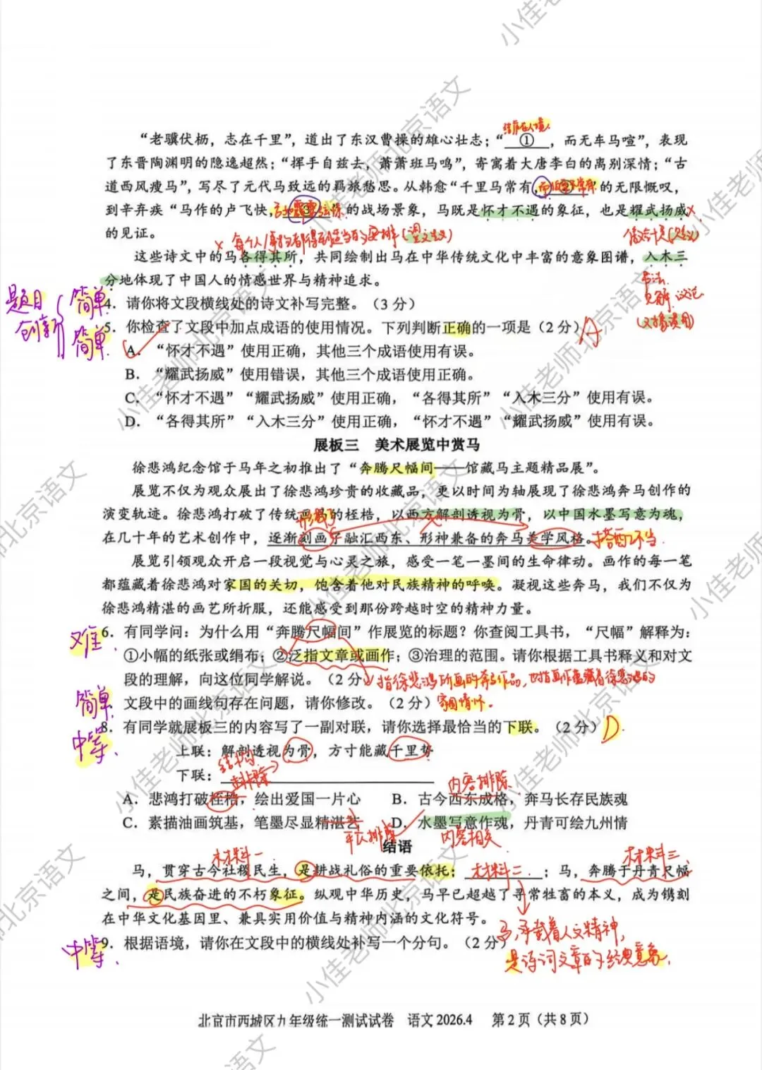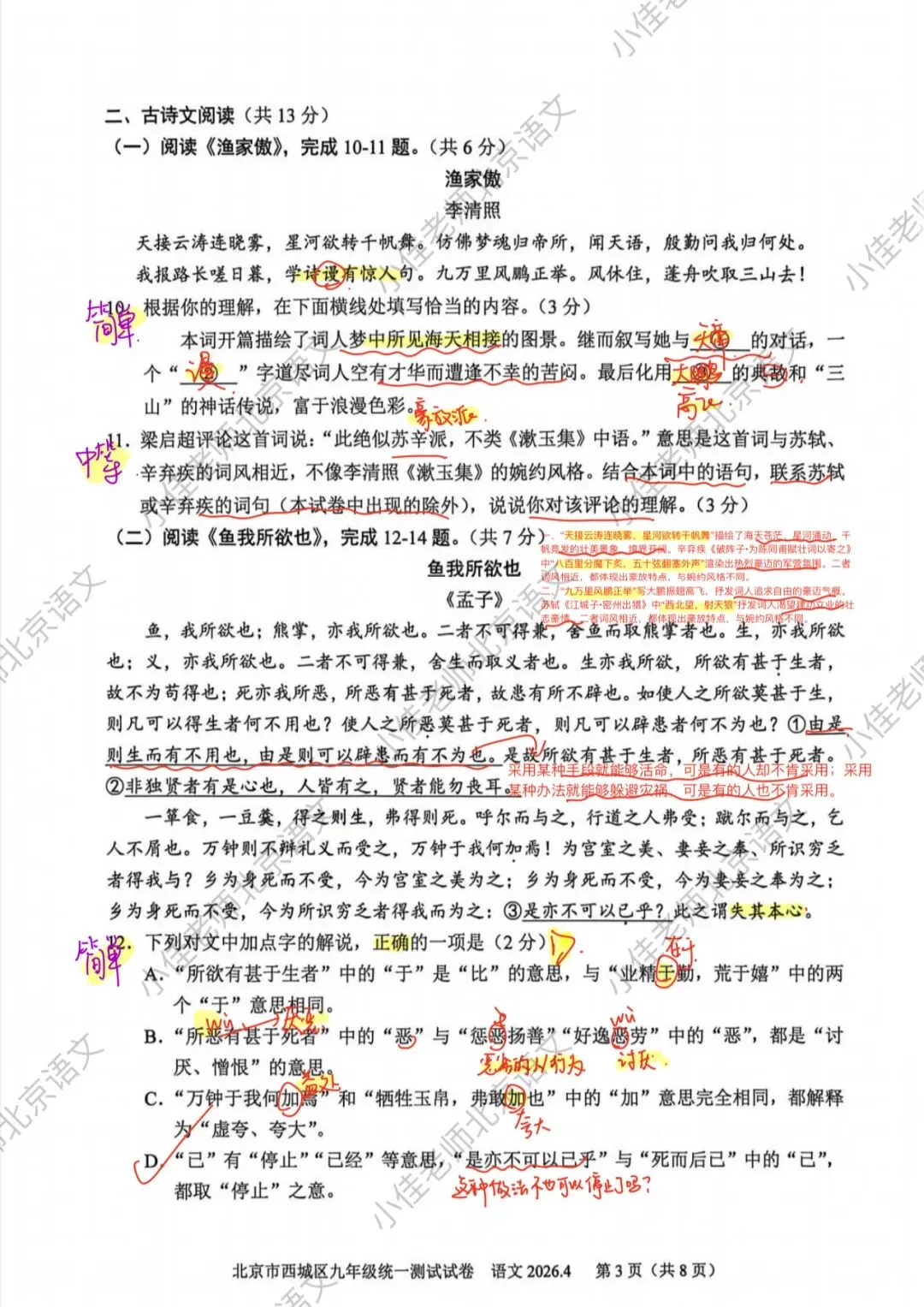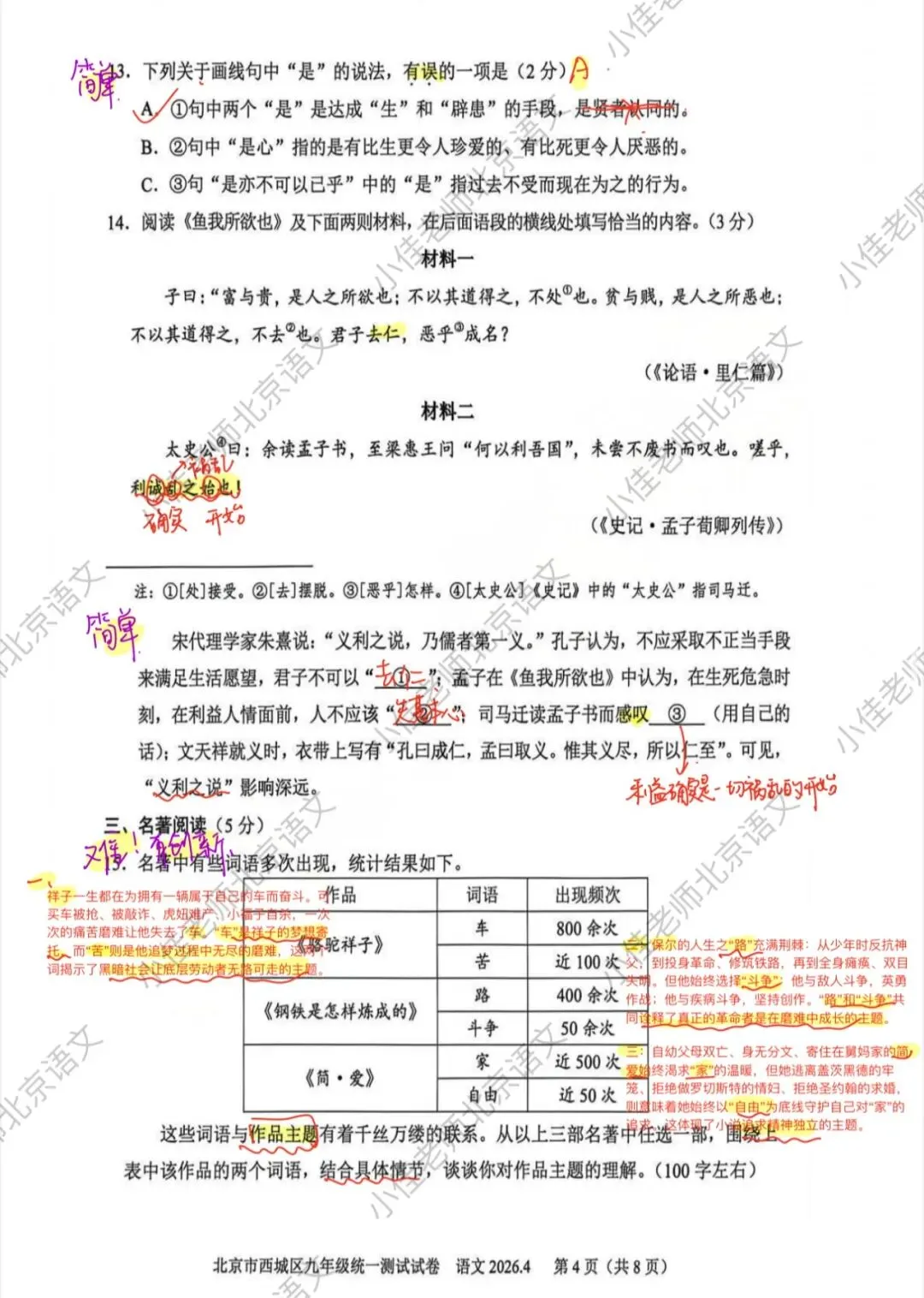 整体略有难度,不少题目有创新,西城的题每年都很有水平,能看出学生的真才实学,如果这份题目在80分左右,或者80分以下,那么要注意了🚨咱们还得再更加努力💪