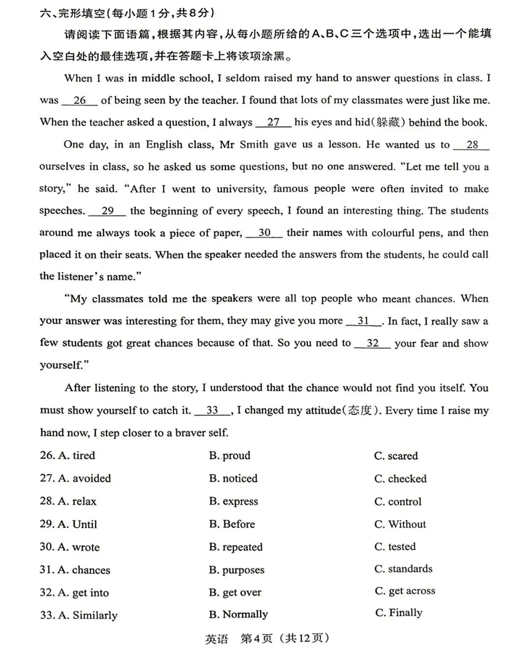 2026扬州广陵区、邗江区中考一模试卷+答案已出!
