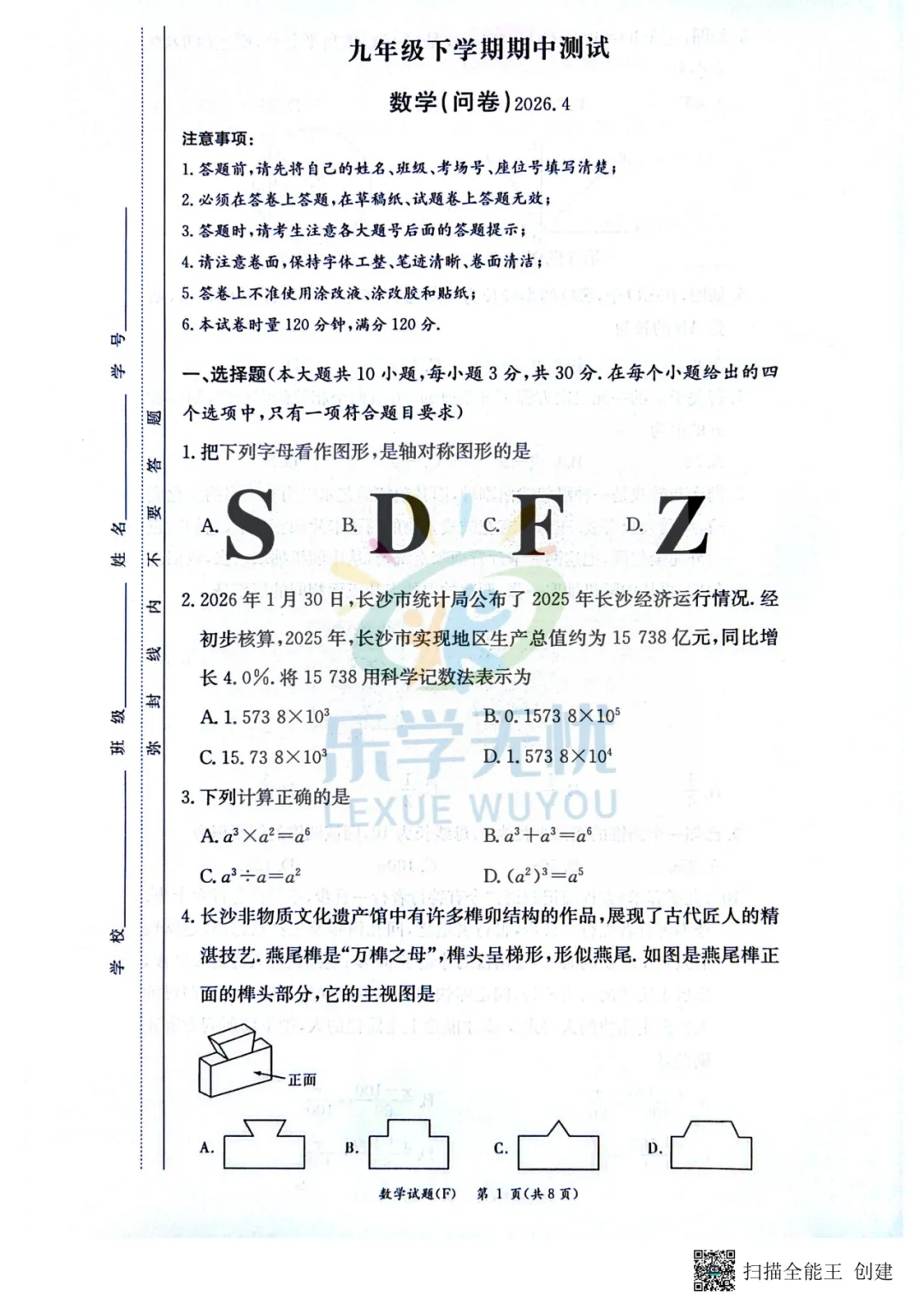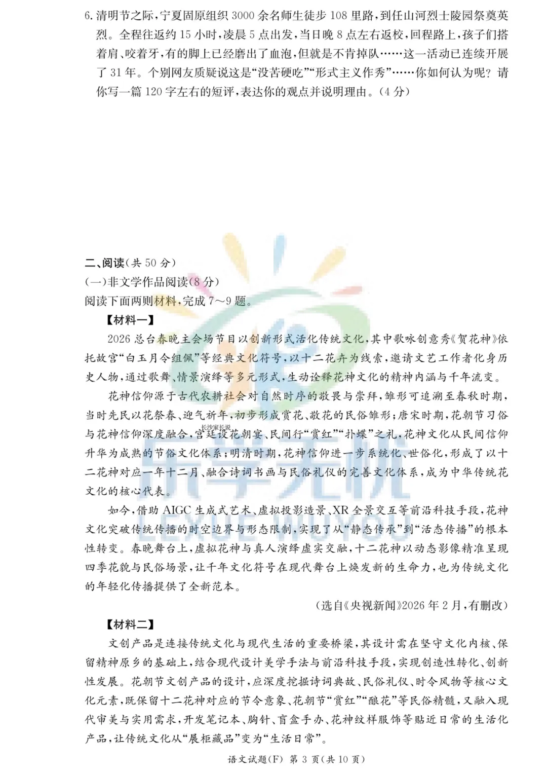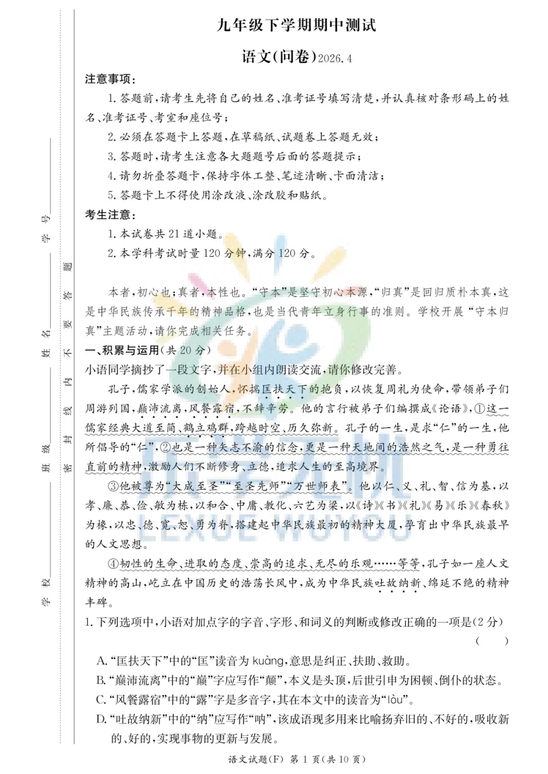 语文2026附中集团九下期中联考语文试卷及答案.pdf
