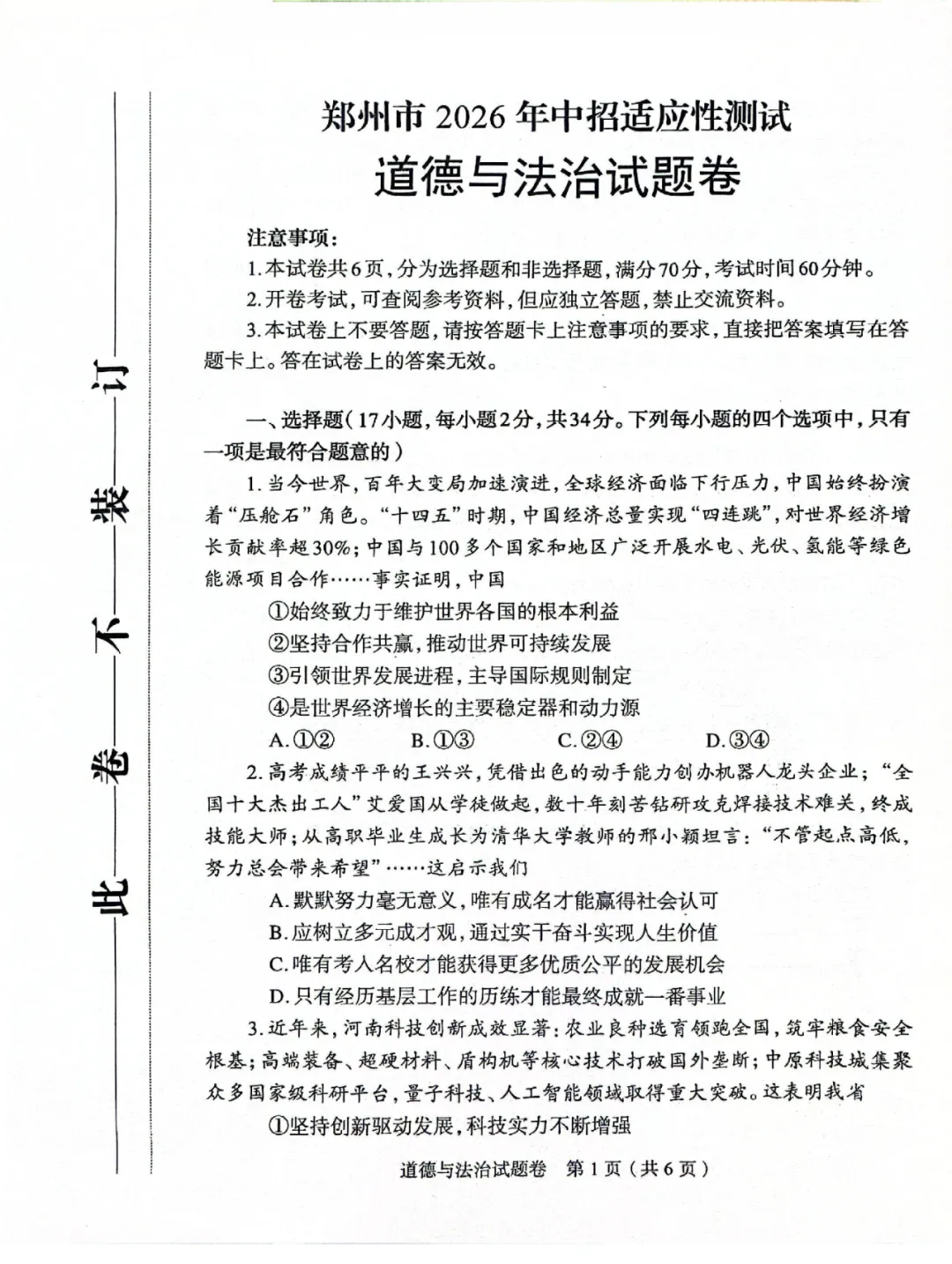 好试卷分享:洛阳市2025年中招模拟考试(二)及答案