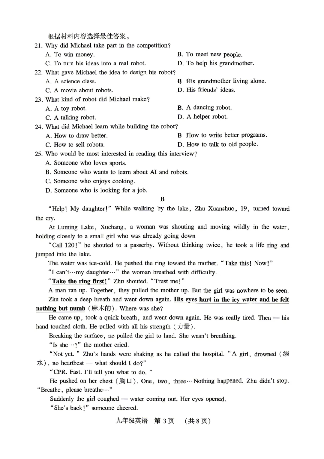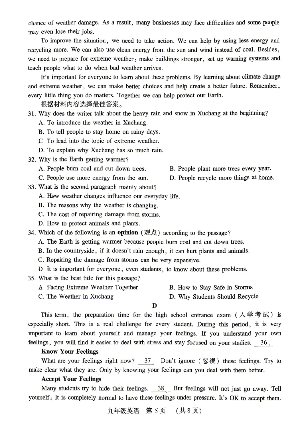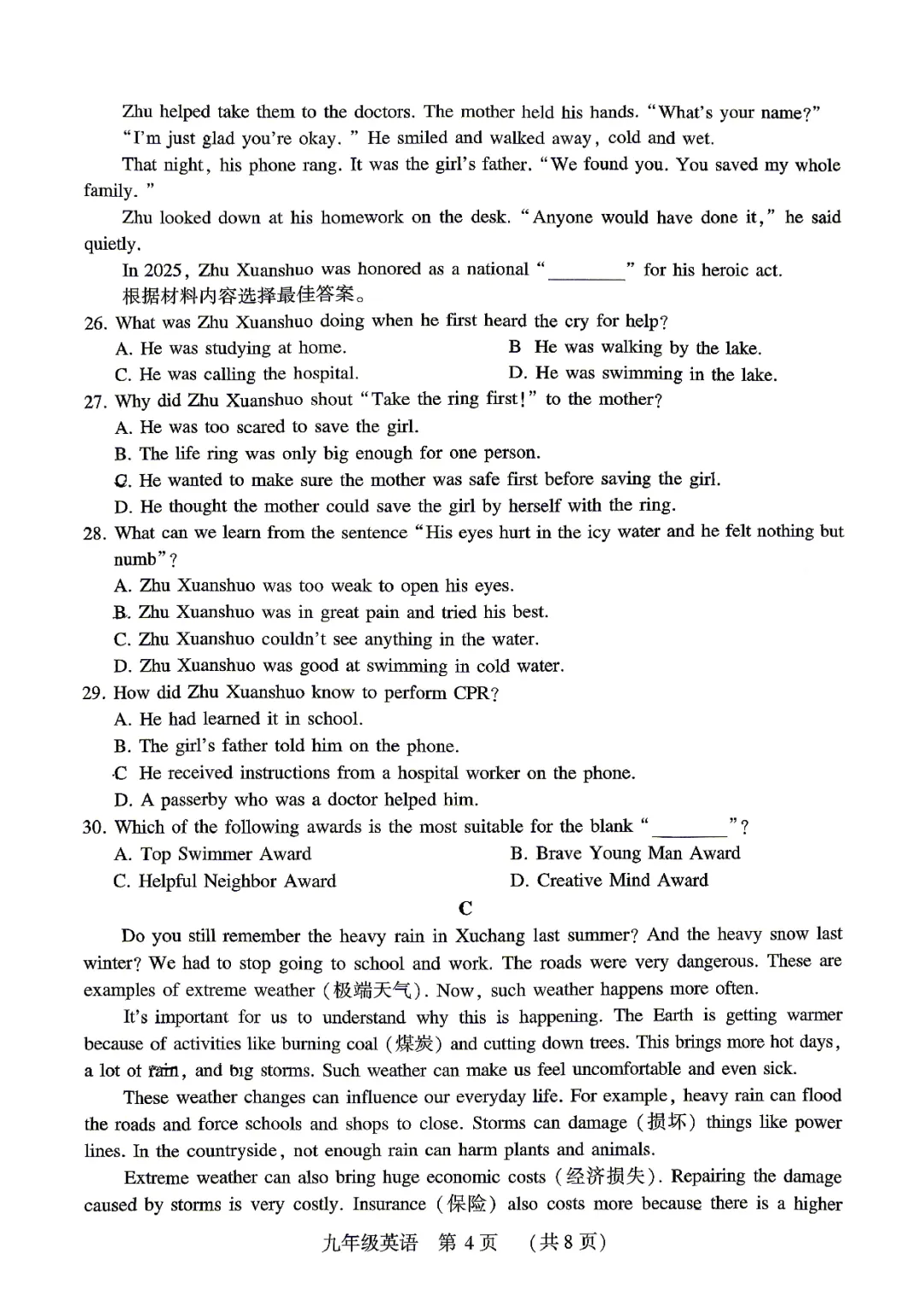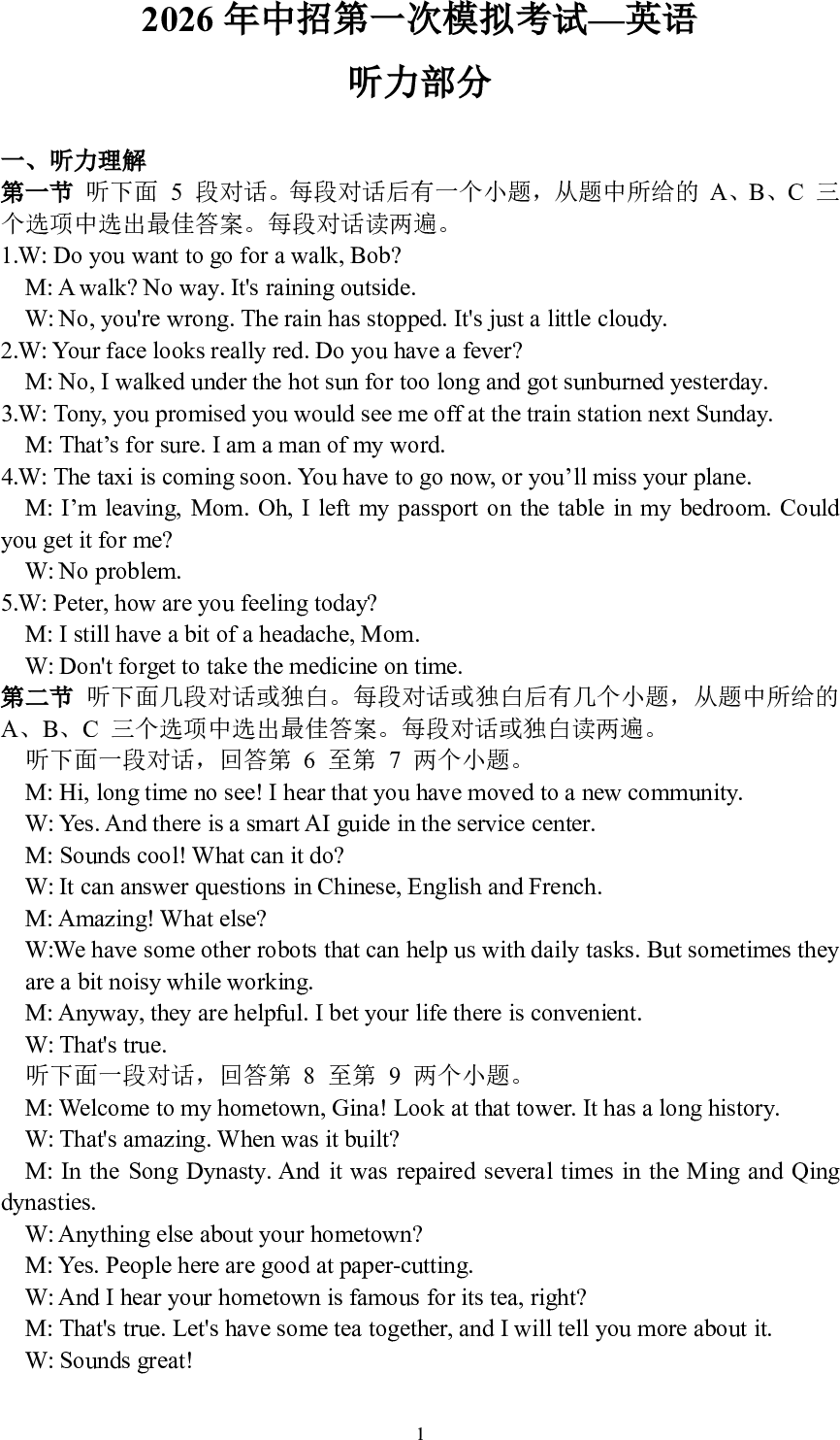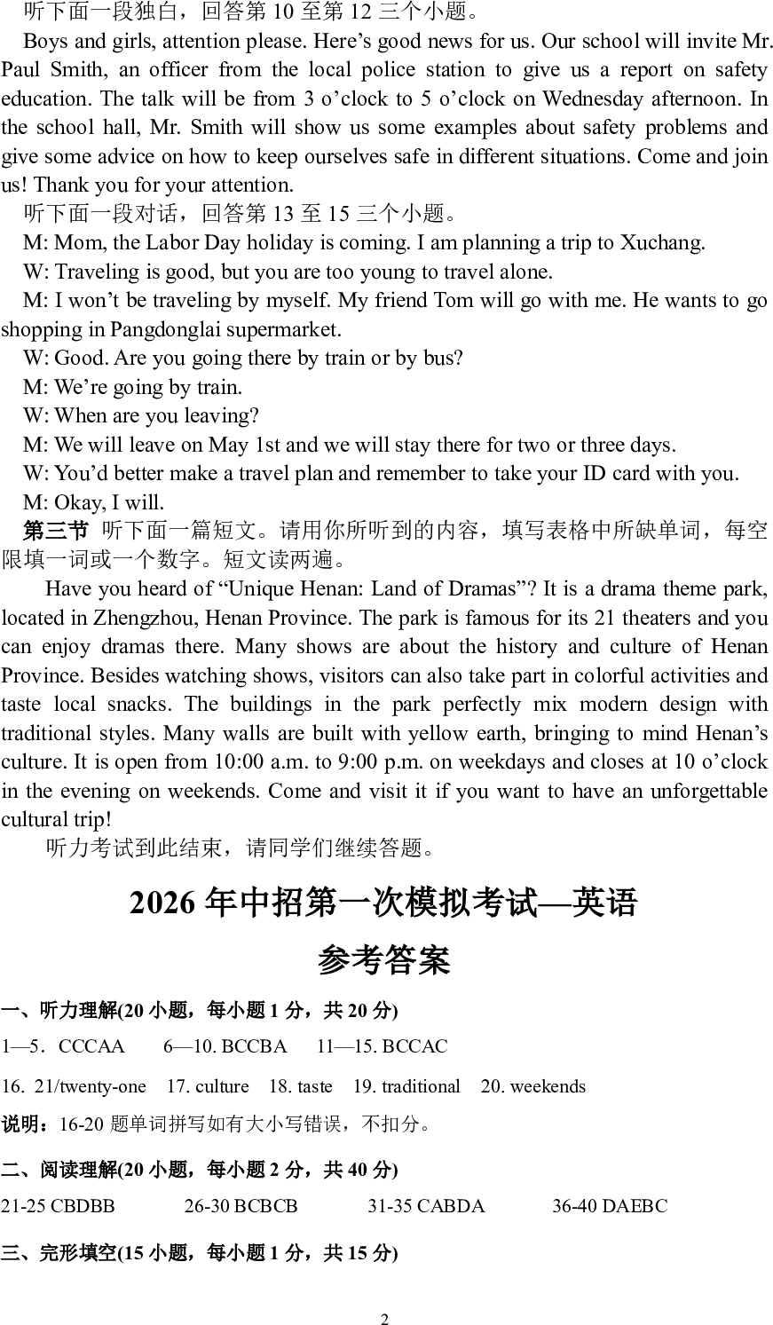 >2026年许昌市中招一模英语试卷及答案(附带听力)